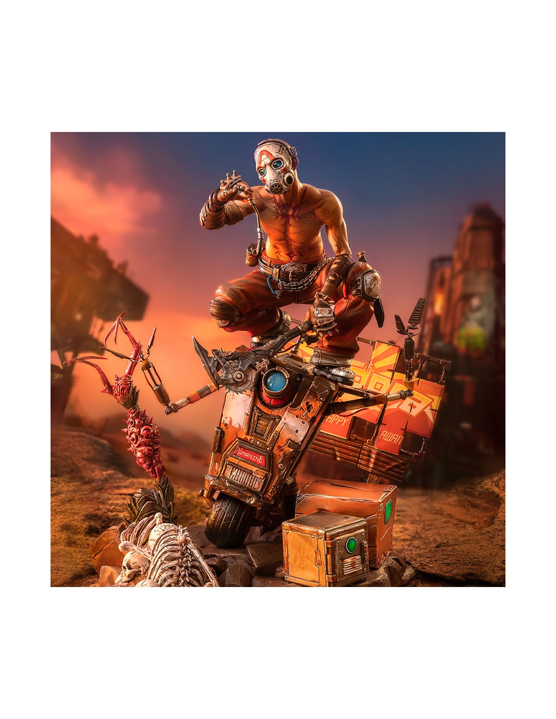 El universo anárquico de Borderlands 3 cobra vida en este impresionante diorama de resina a escala 1/6 protagonizado por el icónico Psycho y el entrañablemente molesto Claptrap. Con una composición dinámica, acabados detallados y una base temática ambientada en Pandora, esta pieza combina humor, acción y estética cel shading para recrear la esencia visual única del juego. Fabricado por PureArts, especialista en estatuas de alta gama, es una figura imprescindible para fans de la saga.
