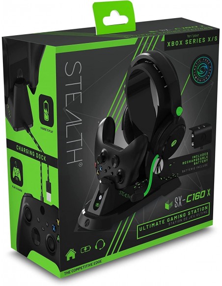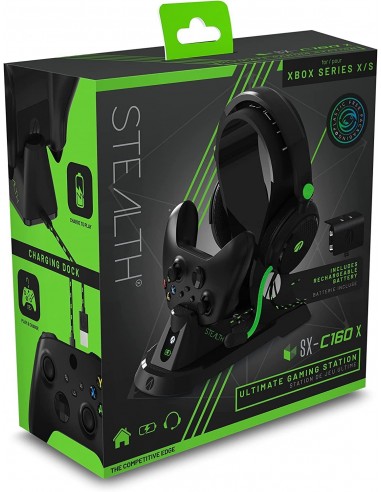 La SX-C160 X Gaming Station para XBOX Series S y Series X es la solución perfecta para guardar todos tus accesorios de juego de XBOX Series S o X en un solo lugar. Mantén tus auriculares para juegos, los cables de carga y los controladores inalámbricos cargados, seguros y ordenados. También cuenta con un cable de carga y juego por si te olvidas de cargar tu mando y quieres seguir jugando. Esta estación de juego viene con unos auriculares de juego C6-100 a juego, un soporte para auriculares, un cable de carga USB y una batería recargable.