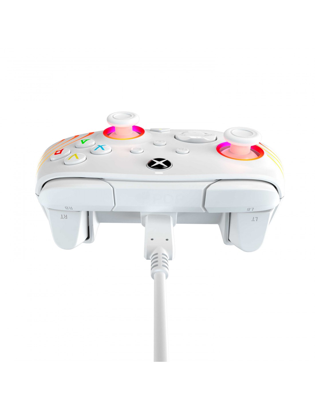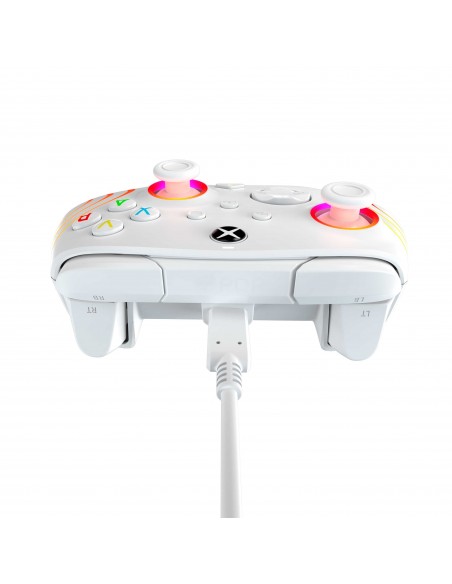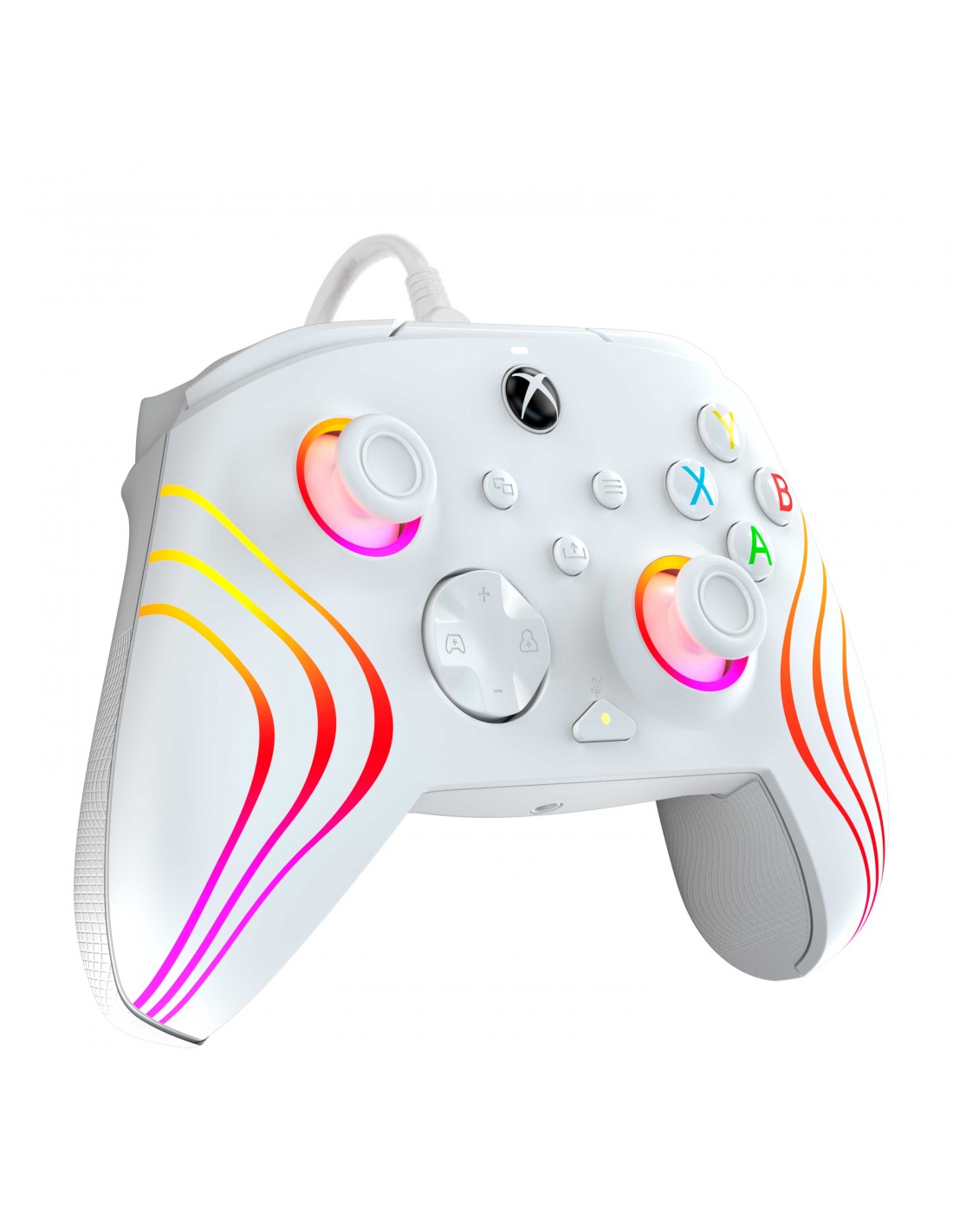 El Afterglow Wave Wired Controller Blanco es un mando con cable con licencia oficial para Xbox Series X|S, Xbox One y PC, que destaca por su diseño translúcido, retroiluminación RGB dinámica y funciones avanzadas para jugadores exigentes. Su carcasa blanca translúcida permite disfrutar del efecto de luz wave con múltiples modos personalizables, mientras que su cable USB-C desmontable de 3 metros garantiza una conexión estable y sin latencia.