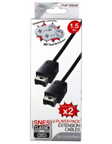 Pack 2x Cable Extension Mando SNES Mini Cables de extensión para mandos para los controladores de SNES™ Classic Mini. Incluye dos cables con una longitud de cable de 1.5m. Compatible únicamente con la consola SNES™ Classic Mini.