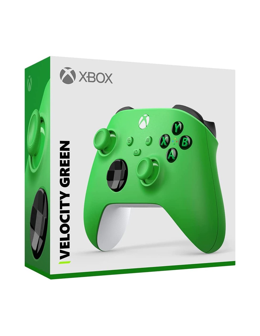 Diseño oficial Xbox Velocity Green, con acabado verde brillante y detalles negros contrastantes.