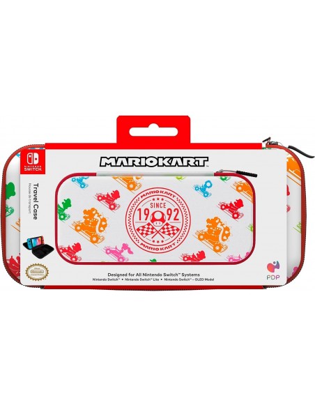 La Funda Travel Case Mario Kart Racers para Nintendo Switch es el accesorio ideal para los fanáticos de la velocidad y la acción. Con un diseño colorido inspirado en la icónica franquicia Mario Kart, esta funda ofrece protección superior y estilo único. Fabricada con materiales resistentes y con espacio para tus juegos y accesorios, es perfecta para llevar tu consola a todas partes de forma segura y con todo el espíritu de las carreras de Mario.