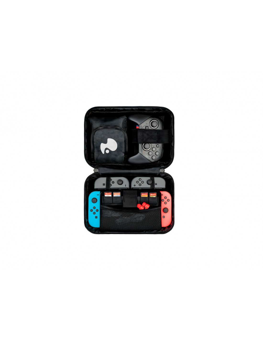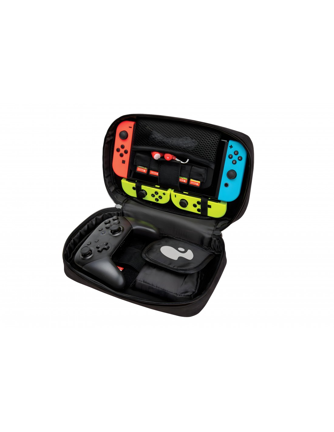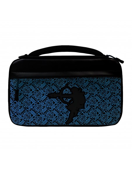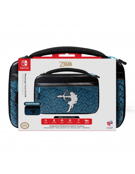 La funda Messenger GLOW es el accesorio ideal para tu equipo de juego y es compatible con Nintendo Switch™, Nintendo Switch™ Lite o Nintendo Switch™ - Modelo OLED. Con bolsillos de almacenamiento, compartimentos con cremallera y mucho más, puedes guardar tu adaptador de CA, baterías, mandos Joy-Con™ adicionales, hasta 14 juegos y otros accesorios pequeños. Esta funda también cuenta con correas de retención que mantienen el mando y el dispositivo en su sitio. Puedes viajar cómodamente con el asa de transporte acolchada y la correa para el hombro extraíble. Dele un toque de brillo a sus juegos con el llamativo diseño exclusivo que brilla en la oscuridad tras la exposición a la luz. Lleves lo que lleves, esta funda con licencia oficial te proporcionará un ajuste personalizado y seguro para todo tu equipo.