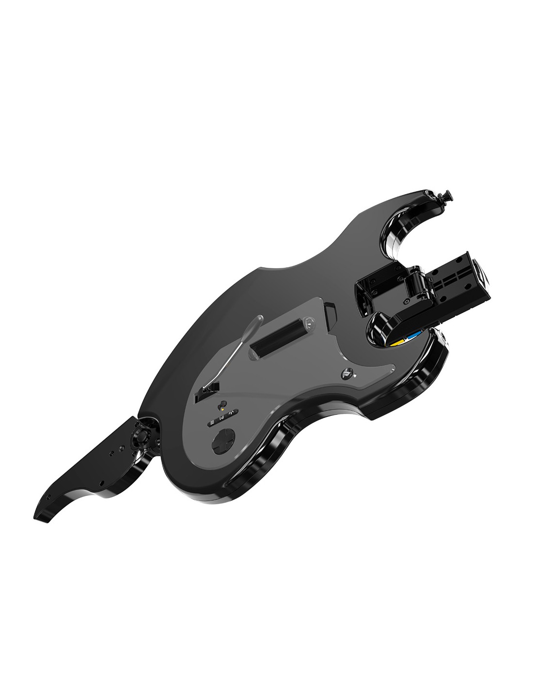 - Incluye una palanca analógica para guitarra incorporada, con patente en trámite, y una correa para el hombro para mayor comodidad; además, la guitarra se puede plegar para facilitar el almacenamiento