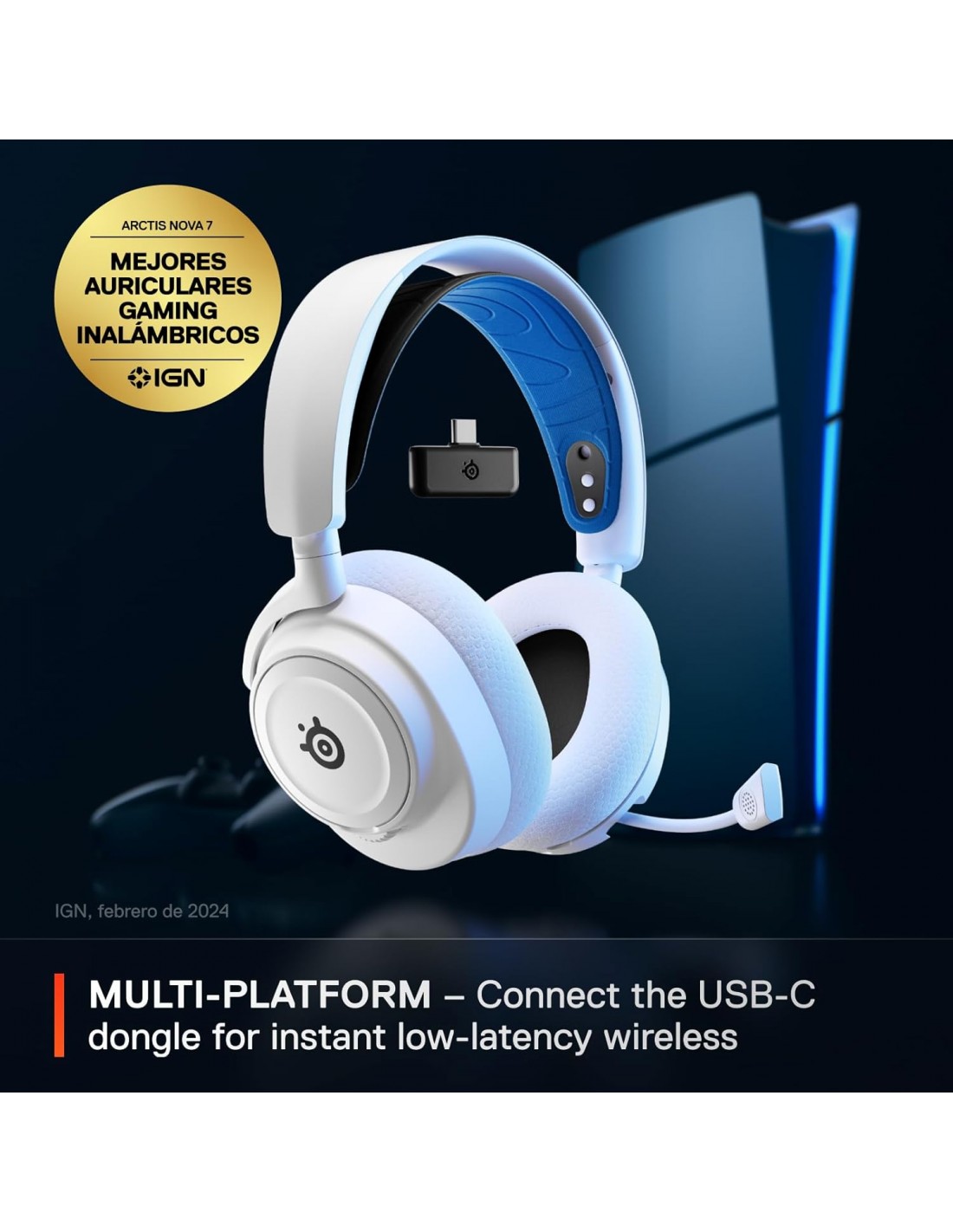 - Compatibilidad multiplataforma - Lleva la Arctis Nova 7 a tu plataforma favorita, como PlayStation, PC, Mac, Xbox o Switch, con un dongle USB-C de bolsillo para una conexión inalámbrica Quantum 2.0 (2,4 GHz) de alta velocidad. Incluye adaptador USB-A.