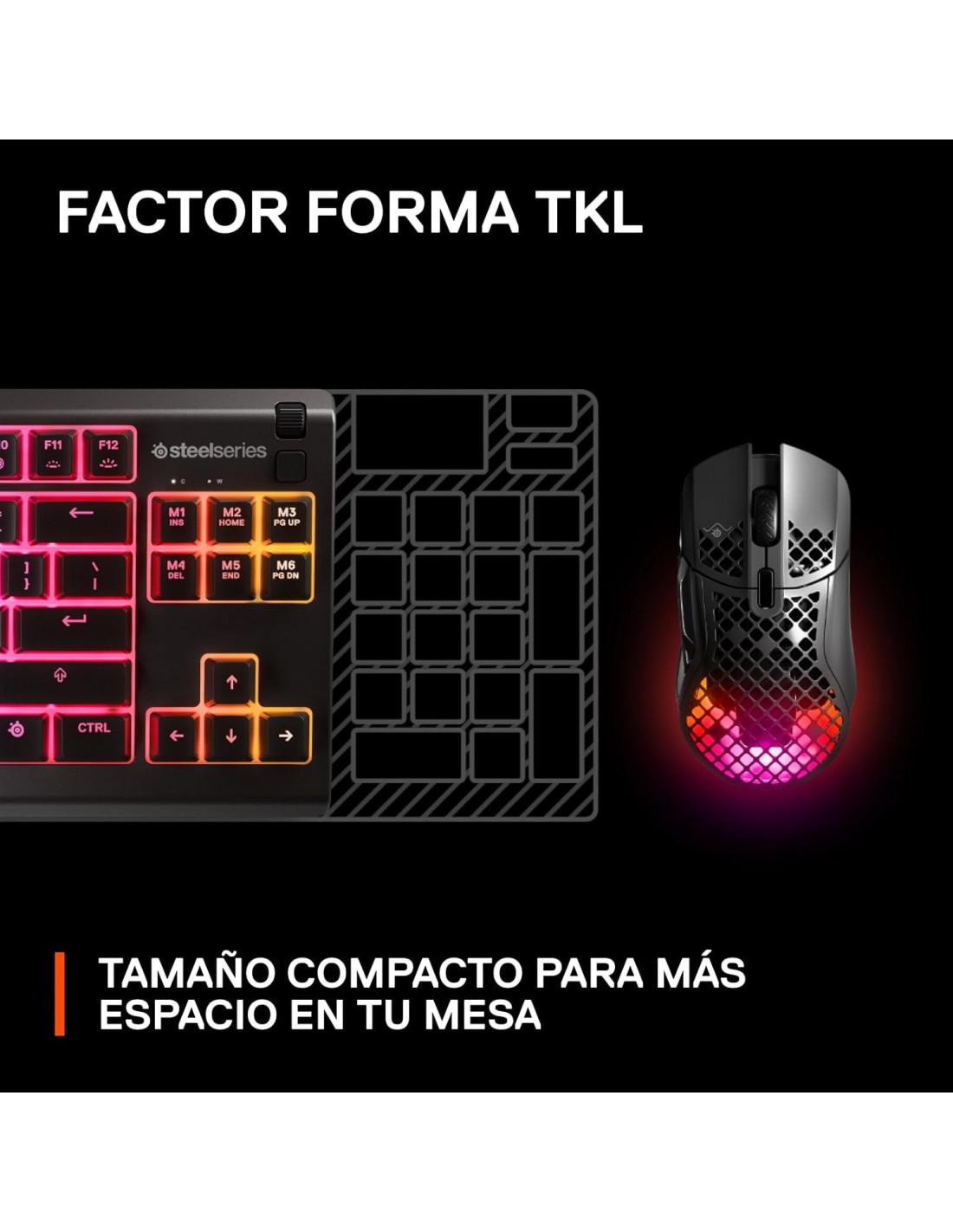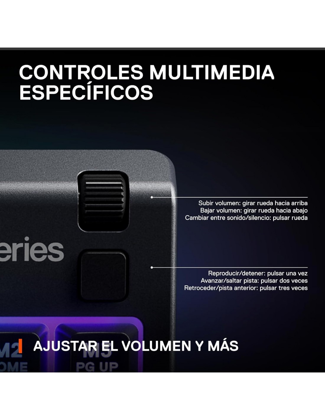 Resistencia al agua IP32: evita daños accidentales por líquidos vertidos. El Apex 3 resistente al agua es un teclado de gaming integral creado gracias a la combinación de la tecnología vanguardista de SteelSeries y una serie de funciones orientadas al gaming. Iluminación RGB de 10 zonas: impresionante esquema de color y efectos reactivos. Switches silenciosos para gaming: 20 millones de pulsaciones con un bajo nivel de fricción y ruido. Reposamuñecas magnético superior: brinda confort y soporte completo para las palmas de las manos. Controles dedicados para multimedia: ajusta el volumen y la configuración sobre la marcha.