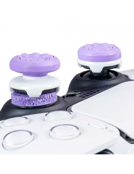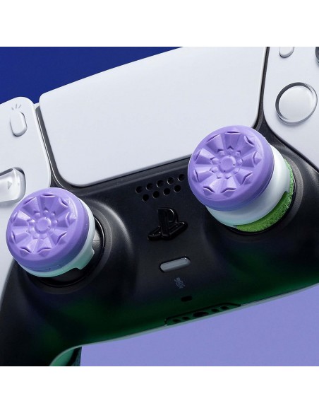 Optimiza tu puntería con el kit Aim Boost – Galaxy Edition. Cuando se usan juntos, los joysticks de rendimiento te ayudan a realizar movimientos más pequeños y precisos en el juego con mayor comodidad y control, mientras que los anillos de precisión brindan resistencia cuando juegas para permitirte aumentar tu sensibilidad en el juego, aumentando tu precisión. Galaxy cuenta con un hermoso esquema de color púrpura sobre plata y un diseño original grabado con láser que ofrece un agarre excepcional. Con una versátil combinación de doble altura, Galaxy se enfrenta a las agotadoras demandas del juego competitivo en línea, ya sea que estés luchando por el campo de batalla, la ciudad o el universo. Los anillos de precisión de KontrolFreek son un material flexible que absorbe la humedad, es resistente a los aceites de las manos y los dedos, amortigua el sonido y recupera rápidamente su forma original para que pueda usarlo una y otra vez con la máxima sensibilidad.