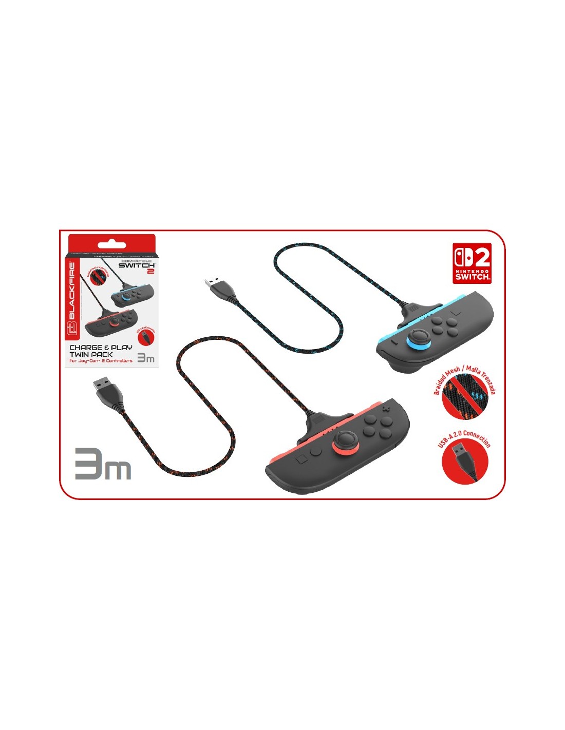 El Blackfire Charge & Play Twin Pack es un conjunto de dos cables de carga diseñados específicamente para los mandos Joy-Con 2 de la Nintendo Switch 2. Con una longitud de 3 metros y una construcción en malla trenzada, estos cables permiten cargar los mandos mientras juegas, ofreciendo comodidad y durabilidad.:contentReference[oaicite:8]{index=8}