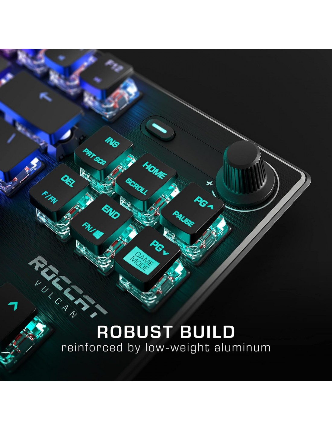 Un teclado ultracompacto diseñado para ofrecer precisión, velocidad y una estética impecable en cualquier setup moderno. El Vulcan II Mini Black reduce el tamaño al 65 %, manteniendo todas las funciones esenciales y añadiendo iluminación AIMO avanzada para un efecto visual espectacular. Su diseño compacto libera espacio para el ratón, ideal para jugadores competitivos o escritorios reducidos.