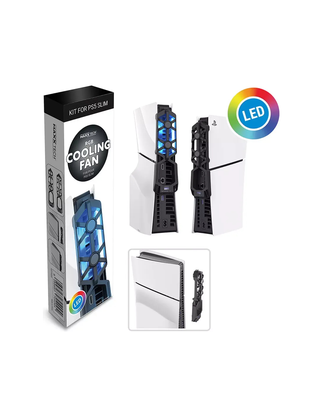 Este Ventilador RGB para PS5 Slim es la solución ideal para mejorar el flujo de aire de tu consola de forma eficaz y silenciosa. Diseñado específicamente para el modelo Slim, se acopla perfectamente a la carcasa sin interferir con el diseño ni los puertos, y añade un toque de luz RGB personalizable que eleva el aspecto visual de tu setup gaming.