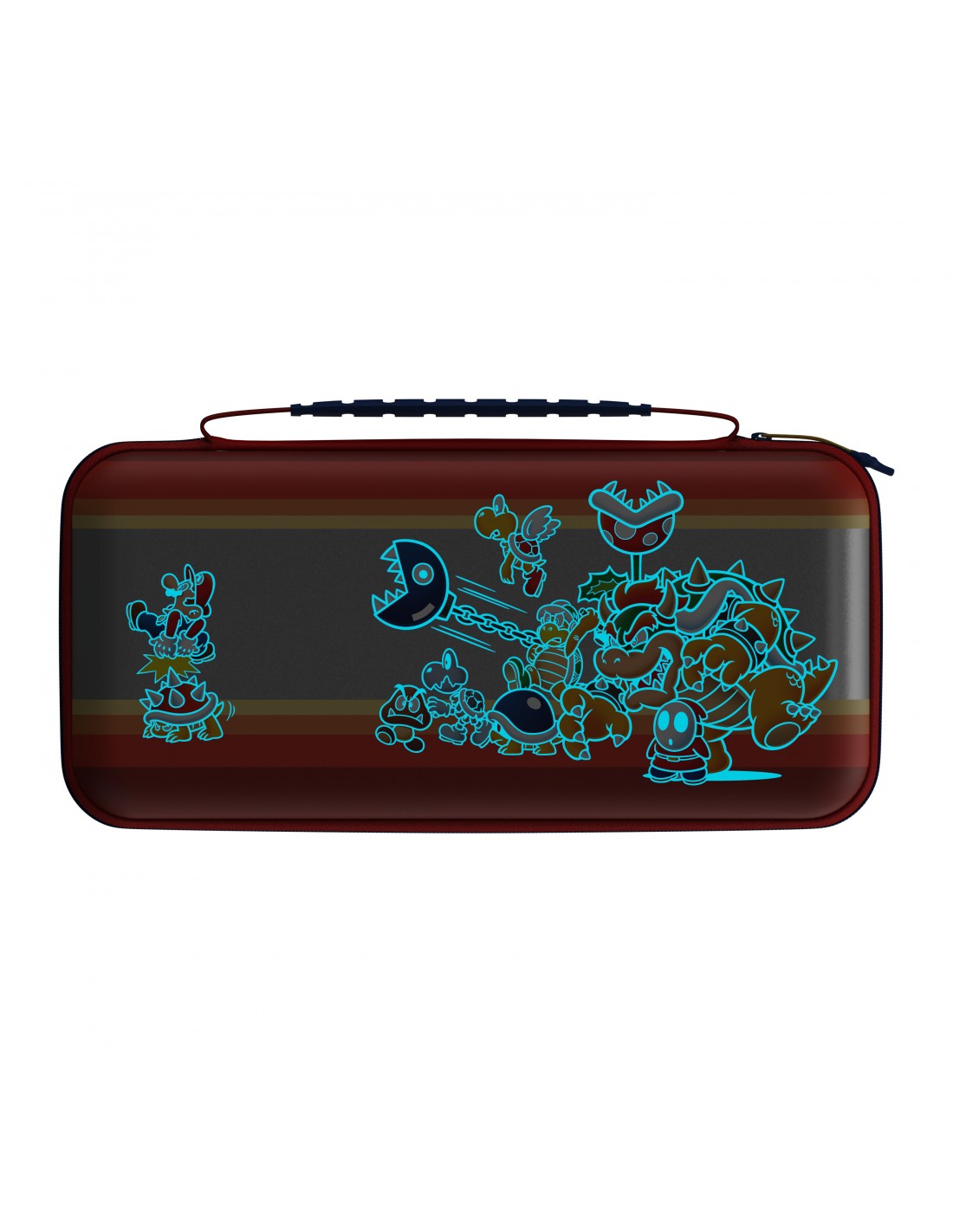 Su diseño de Koopa Troop que brilla en la oscuridad, su resistente carcasa de EVA, su interior acolchado y su espacio para guardar accesorios la convierten en la opción perfecta para viajar con total seguridad. Con licencia oficial de Nintendo®.