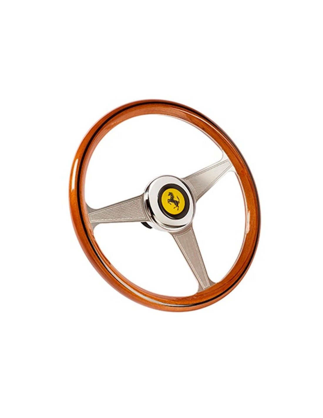 Construido en madera auténtica pulida, con aro metálico cepillado y una placa frontal grabada con láser del Cavallino Rampante, este accesorio ofrece una experiencia inmersiva sin igual, evocando la era dorada del automovilismo con cada giro. Es el complemento ideal para exhibir con orgullo… y competir con elegancia.