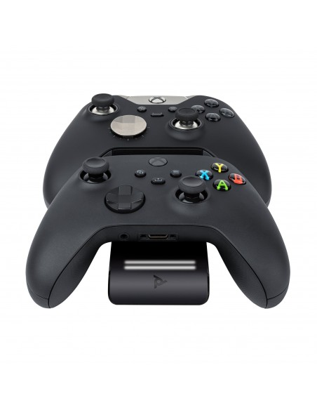 Con barras de luz ambiental con atenuación automática que rodean la base y un diseño moderno ultradelgado, este nuevo sistema de carga se adapta perfectamente a su sala de juegos o sala de estar. El cargador con licencia oficial también incluye dos paquetes de baterías recargables para los controladores Xbox Wireless y Elite. Las características innovadoras del sistema de carga ultradelgado de PDP Gaming ofrecen estilo y funcionalidad que lo hacen imprescindible para los jugadores inalámbricos.