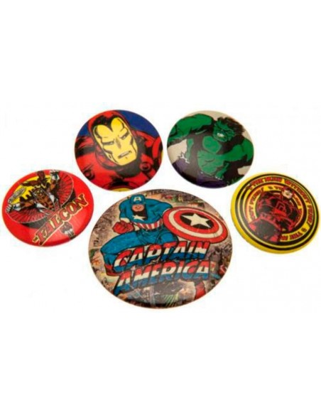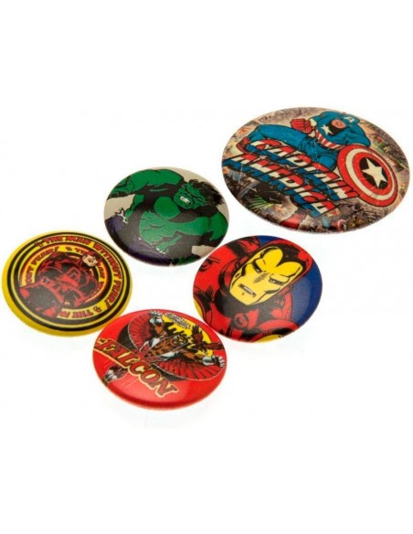 Set de chapas de 3,8 x 2,5 cm todas con imperdible de seguridad en la parte posterior. con licencia oficial de MARVEL