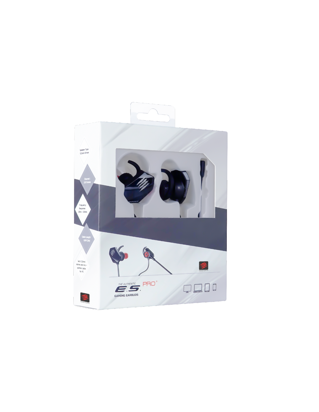 Los auriculares gaming E.S. PRO+ de Mad Catz ofrecen el rendimiento de unos auriculares de tamaño normal en un formato extraordinariamente pequeño. Los E.S. PRO+ son una solución de audio increíblemente versátil, compatible con una amplia gama de dispositivos de audio, que se conectan de forma sencilla a todo tipo de dispositivos, desde mandos de juegos hasta dispositivos inteligentes. El diseño ergonómico no sólo proporciona comodidad, sino que te sumerge en la acción como nunca antes.