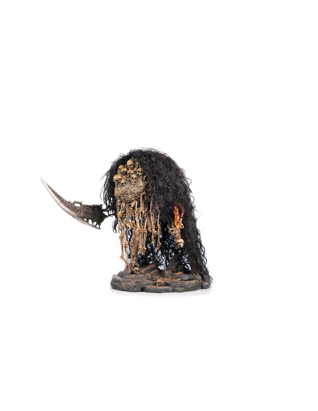 Como el epítome de todas las cosas relacionadas con la muerte en el universo de Dark Souls ™, el cuerpo entero de Nito está forjado a partir de esqueletos y huesos de los muertos, incluida la Gran Espada de Gravelord en su brazo derecho, que no es algo que esté sosteniendo sino que es parte de él. Aparte de los esqueletos que cuelgan de la parte superior del torso, que están hechos de PVC, el resto de la estatua y la base están hechos de resina. La capa de pelo sintético extraíble sobre Nito emula la capa similar a un cabello que tiene en el juego, lo que contribuye a su aura muy siniestra y siniestra. Y por último, como se ve en la cinemática de apertura del juego original Dark Souls ™, Gravelord Nito sostiene un Lord Soul, que es lo que sostiene en su mano izquierda.