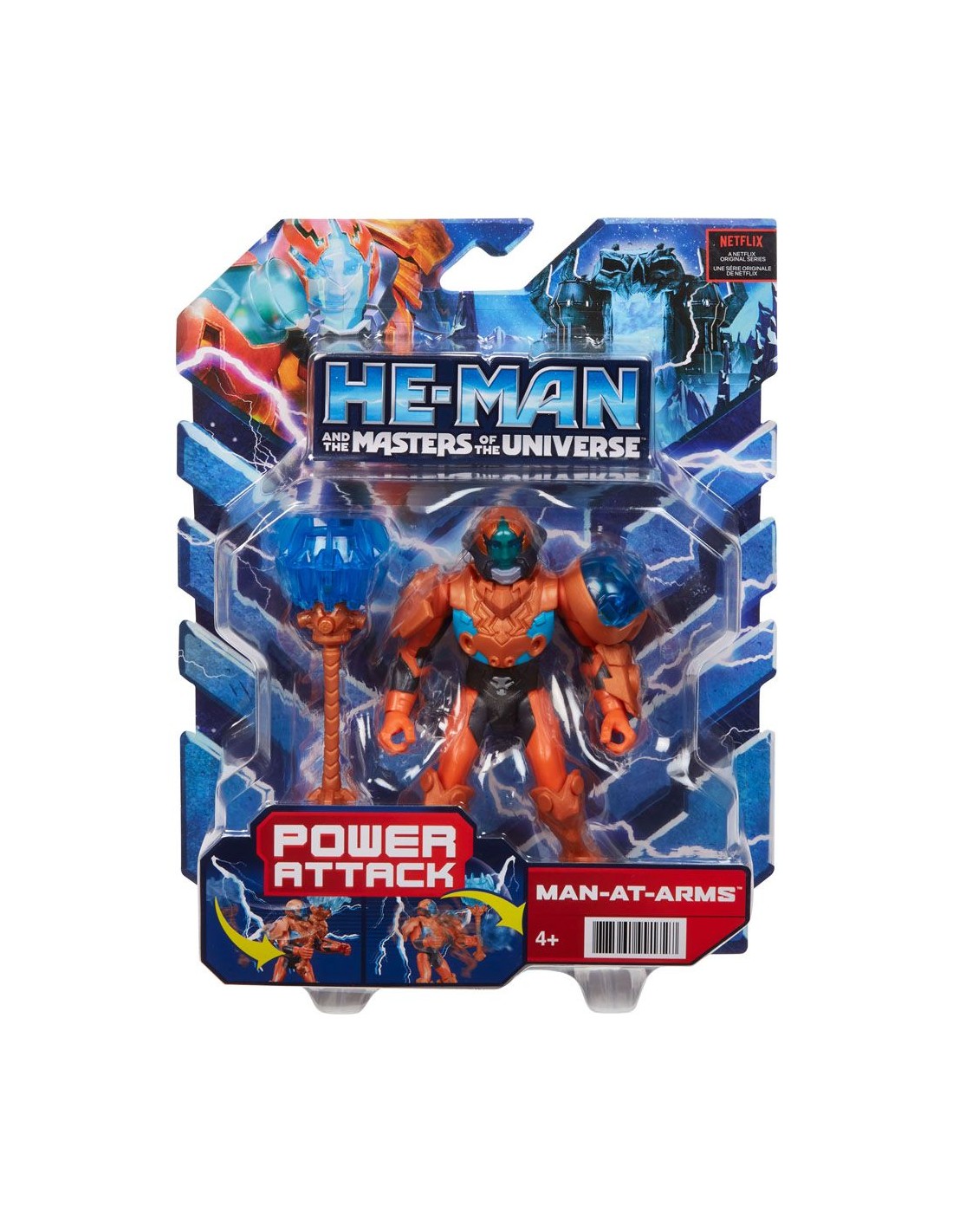 Mattel presenta la figura de Man-At-Arms dentro de su línea de figuras articuladas basada en la nueva serie de televisión de Netflix de He-Man and the Masters of the Universe. Se presenta en una caja con accesorios.