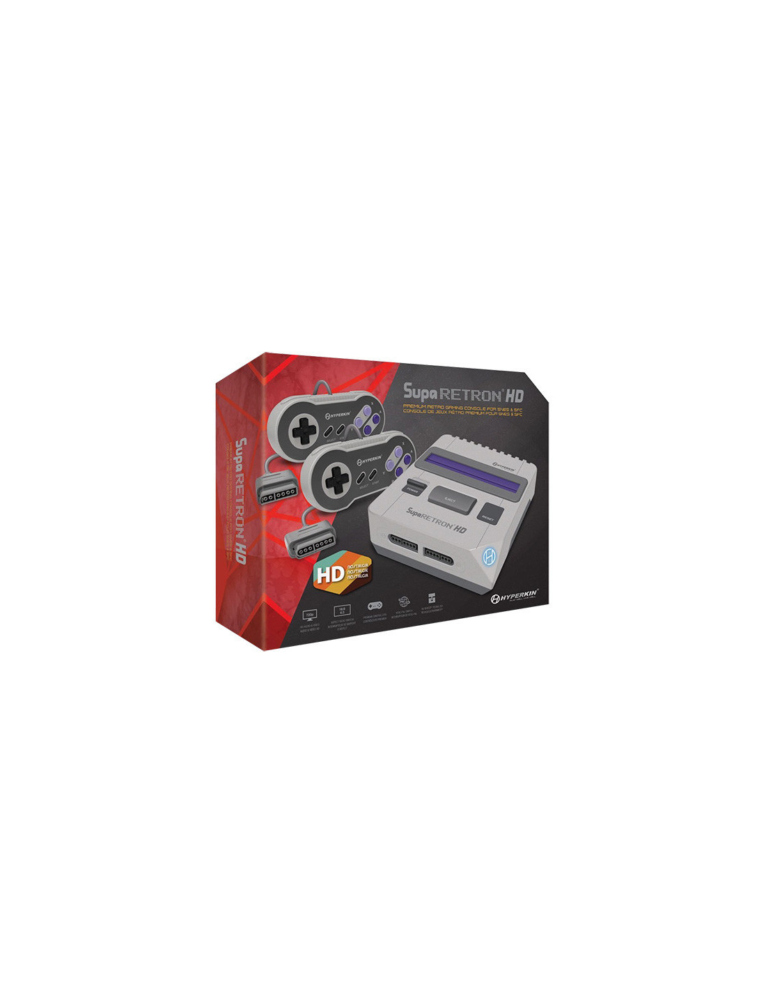 El SupaRetroN HD tiene 16 bits de nostalgia de alta definición, lo que te permitirá reproducir sus cartuchos SNES (NTSC y PAL) o SFC (japonés) en un nítido y vibrante HD 720p. Incluye dos controladores premium de estilo clásico, un cable HD de 1 metro (admite una relación de aspecto de 4:3 y 16: 9) y un cable de carga Micro USB de 2 metros. Incluso podrás jugar a través de AV con el cable AV. No hay duda de que la SupaRetroN HD es una maravilla del pasado y el futuro de los videojuegos retro. ¡Desempolva esos cartuchos y ponte a disfrutar!