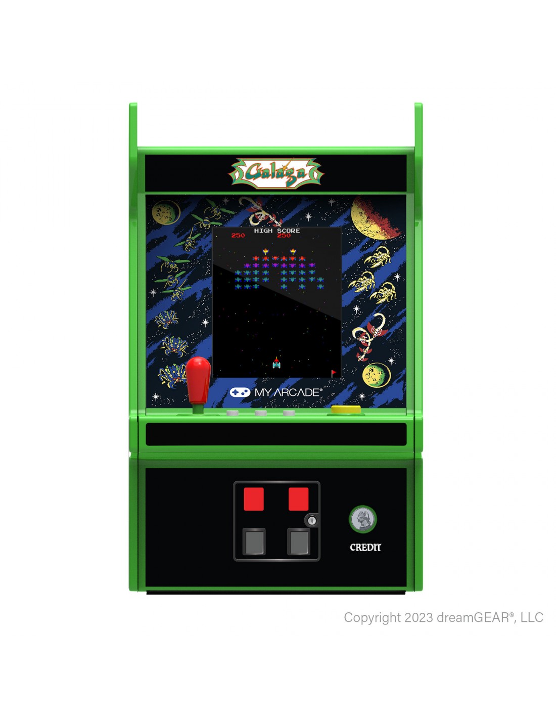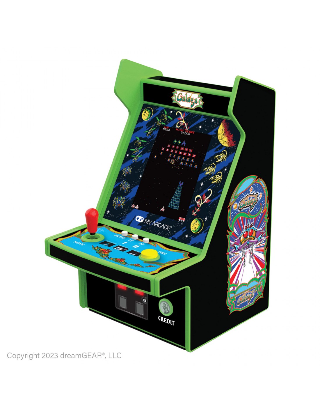 Dos de los shooters más legendarios del arcade en una mini recreativa espectacular: Galaga y Galaxian vuelven en formato compacto, vibrante y totalmente coleccionable.