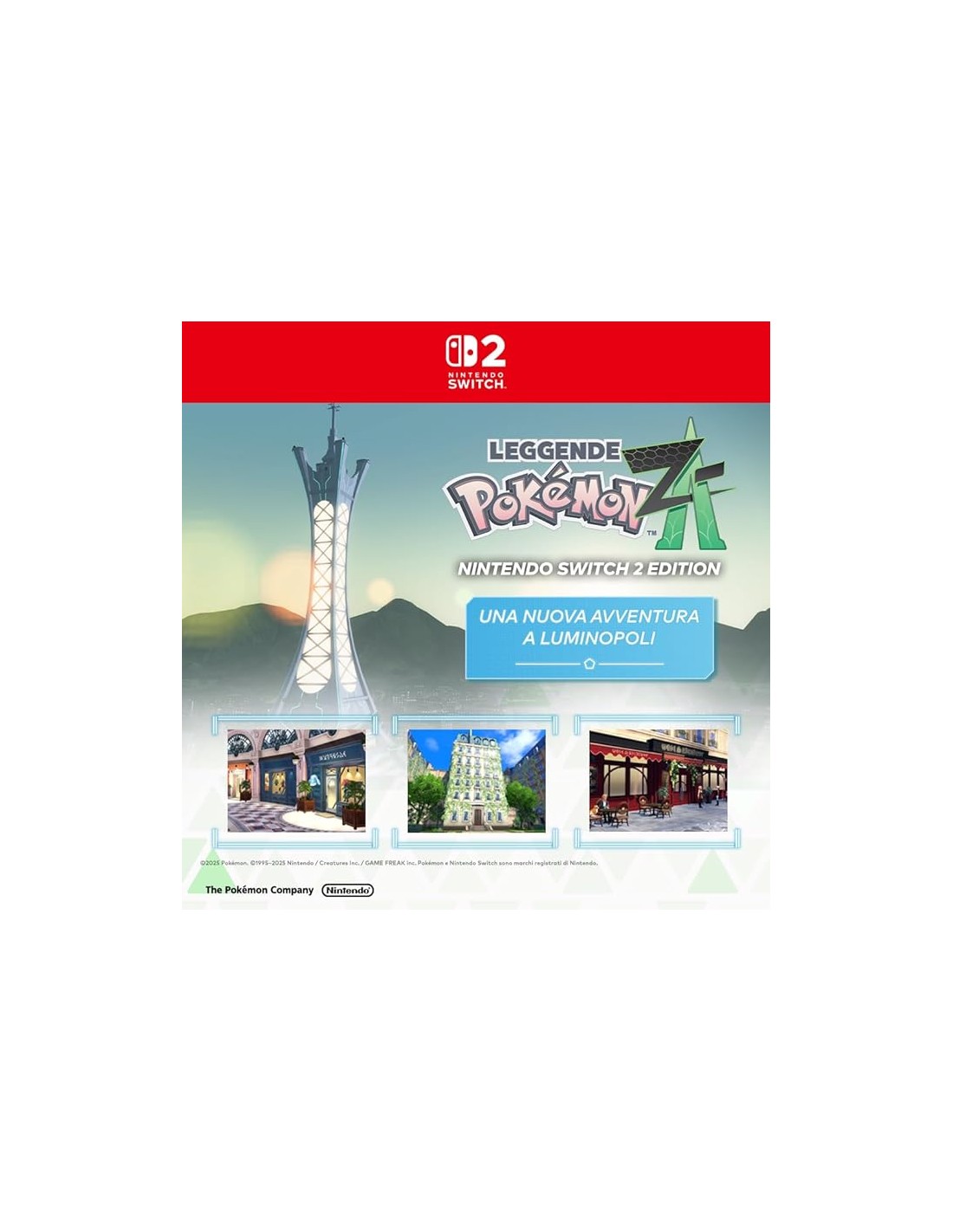 Incluye juego completo Pokémon Leyendas: Z-A, ambientado en una futurista Ciudad Luminalia.