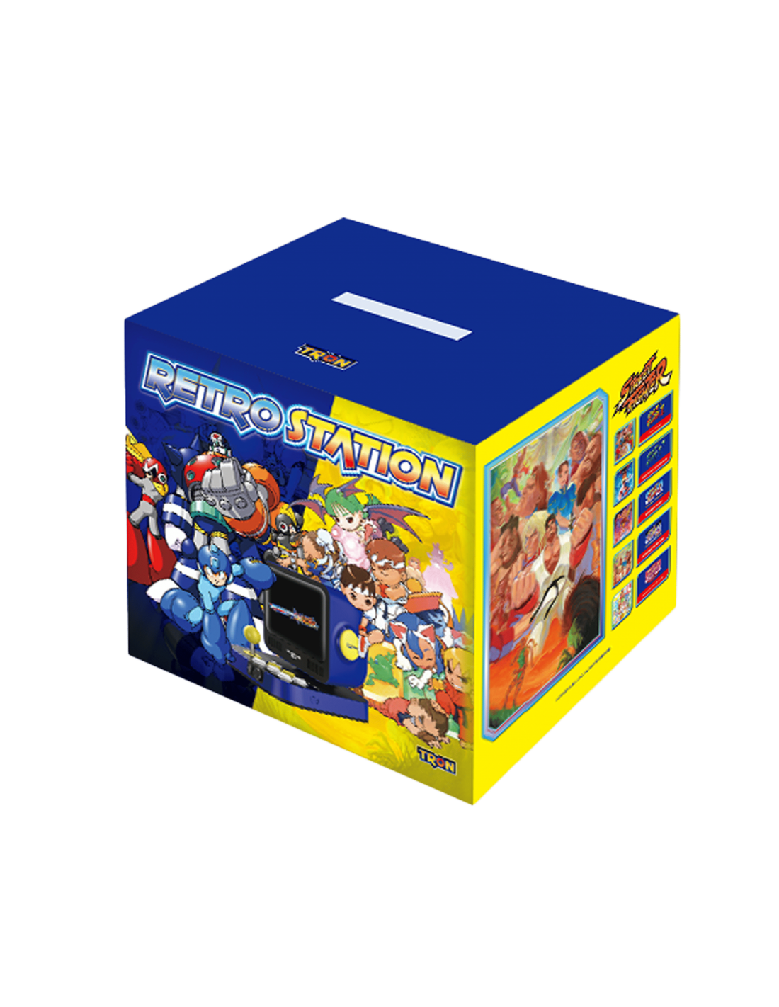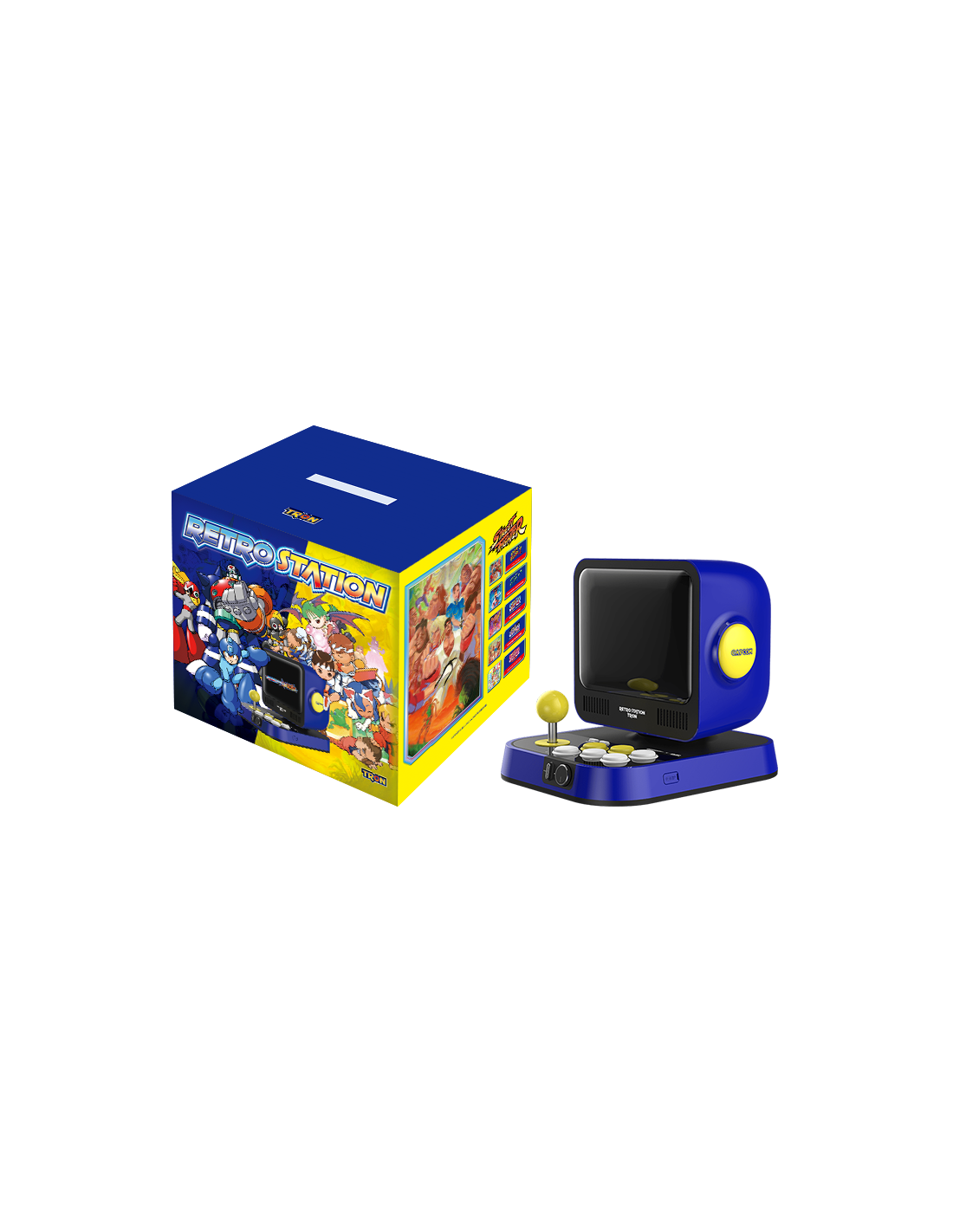 La Capcom Retro Station de UNICO es una consola compacta con alma de recreativa, creada para rendir tributo a los dos pilares más icónicos del catálogo Capcom: Mega Man y Street Fighter. Con una estética retro irresistible y una pantalla integrada de 8 pulgadas, esta estación de batalla está diseñada para ofrecer partidas directas, intensas y llenas de nostalgia, sin necesidad de configuraciones complicadas.
