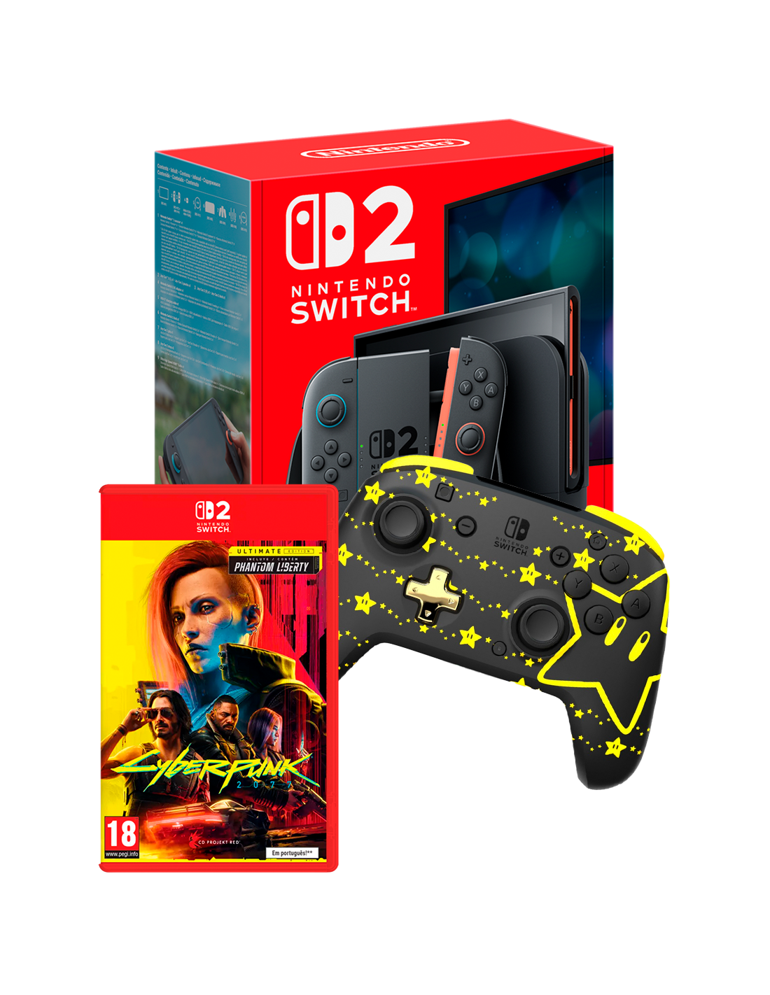 Switch 2 - Nintendo Switch 2 Consola + Cyberpunk 2077: Ultimate Edition + Rematch Wireless Controller Glow Mario Stars