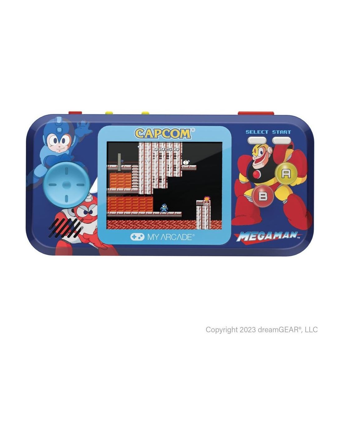 - Consola portátil Pixel Pocket Pro Mega Man con juegos clásicos integrados.