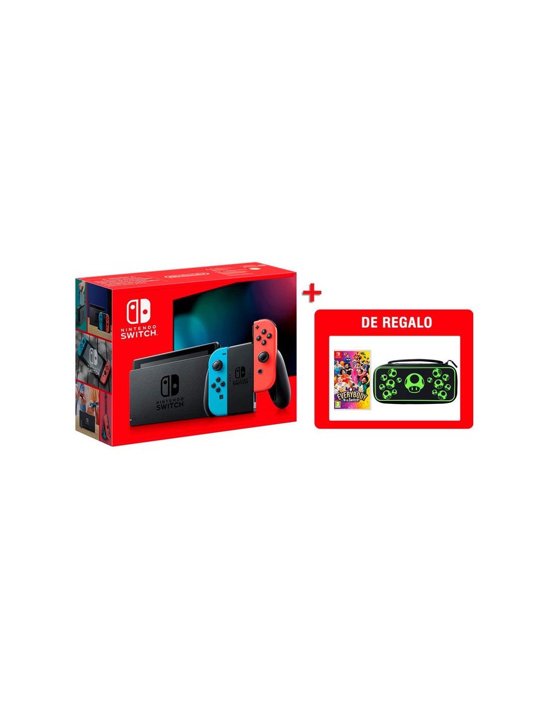 Switch - Nintendo Switch Consola Azul Neon/Rojo Neon V2 + Everybody 1-2 + Funda Travel Case Plus Glow
