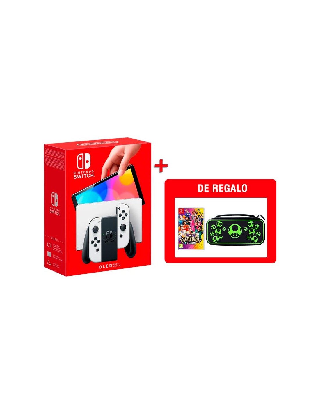 Switch - Nintendo Switch Consola OLED Blanca + Everybody 1-2 + Funda Travel Case Plus Glow