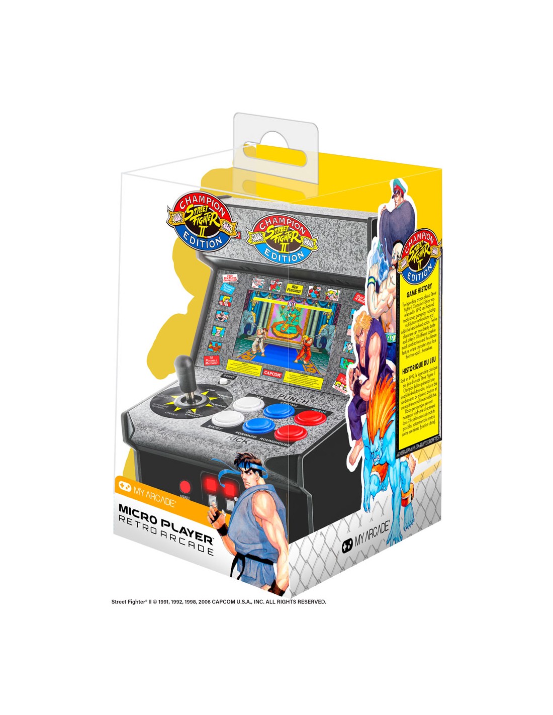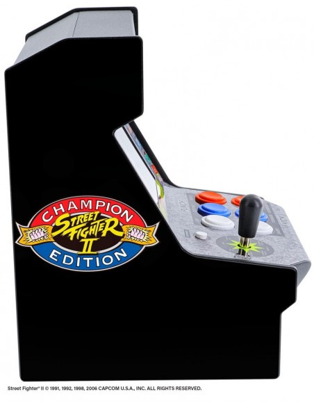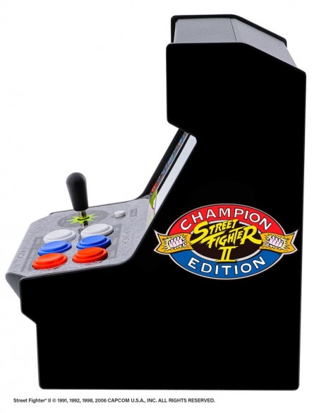 La Micro Player Street Fighter II 7,5 inch es una recreativa en miniatura diseñada para capturar la nostalgia del arcade original en un formato compacto, funcional y perfecto para coleccionistas. Su carcasa muestra arte clásico del juego, mientras que la pantalla de 7,5 pulgadas ofrece una visualización nítida ideal para disfrutar de partidas rápidas o exhibirla como pieza central en una colección retro.