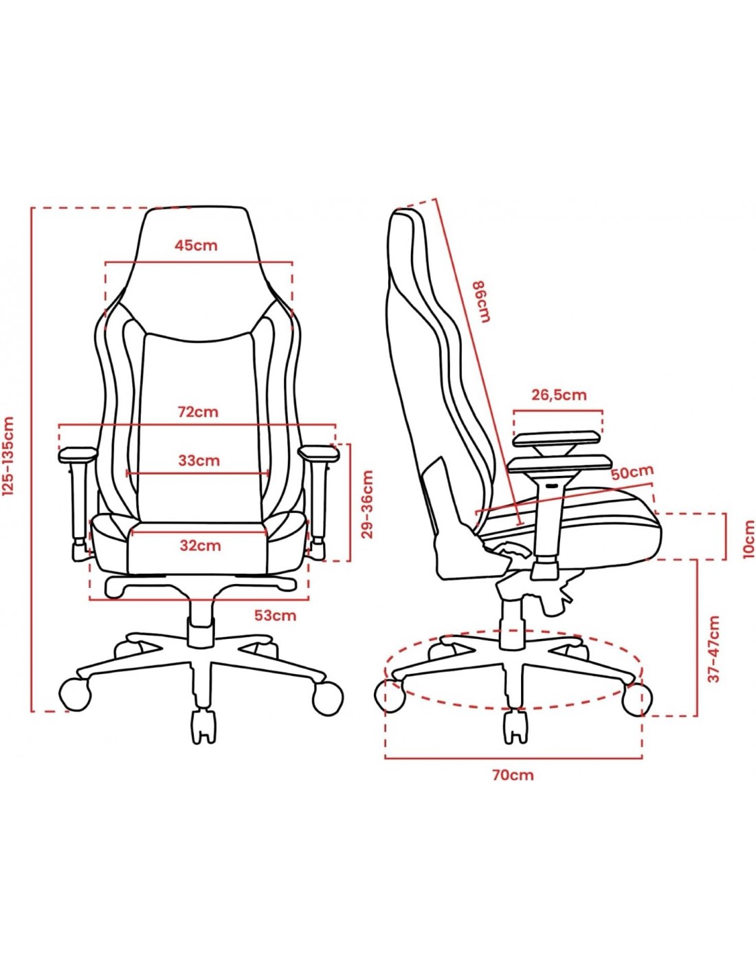 Soporta hasta 145 kg, con asiento extra amplio y respaldo alto.