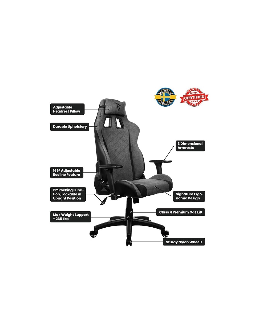 Silla Gaming Arozzi Avanti SoftFabric – Gris Oscuro