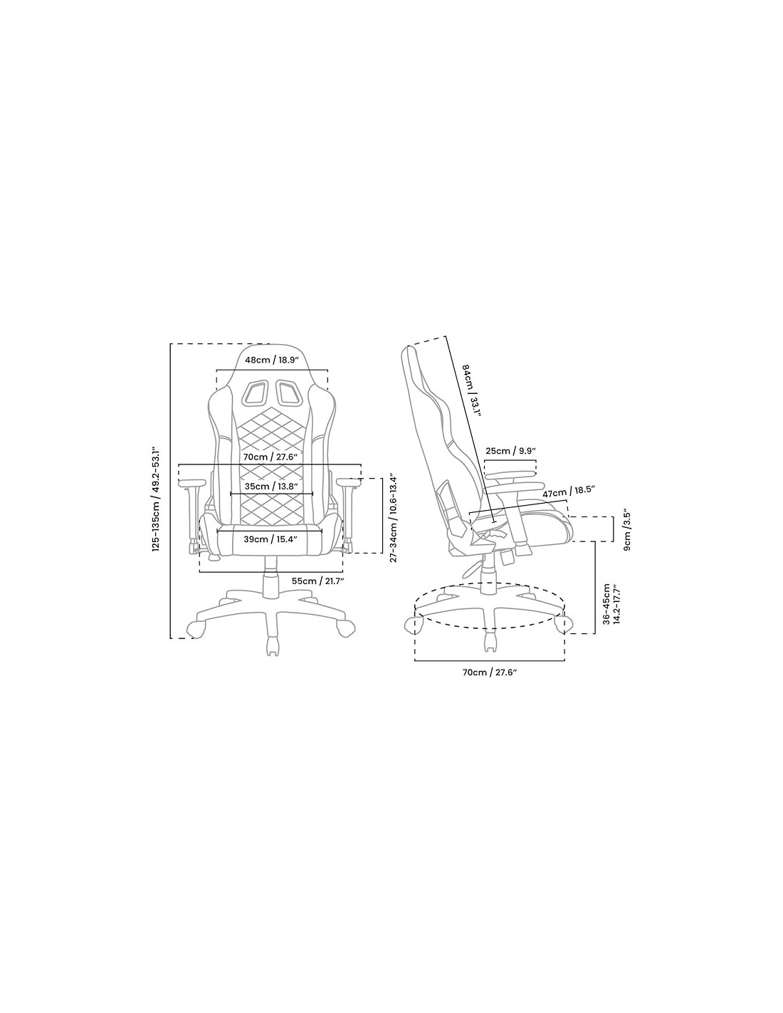 Asiento ancho y acolchado, pensado para máximo confort durante horas continuas.