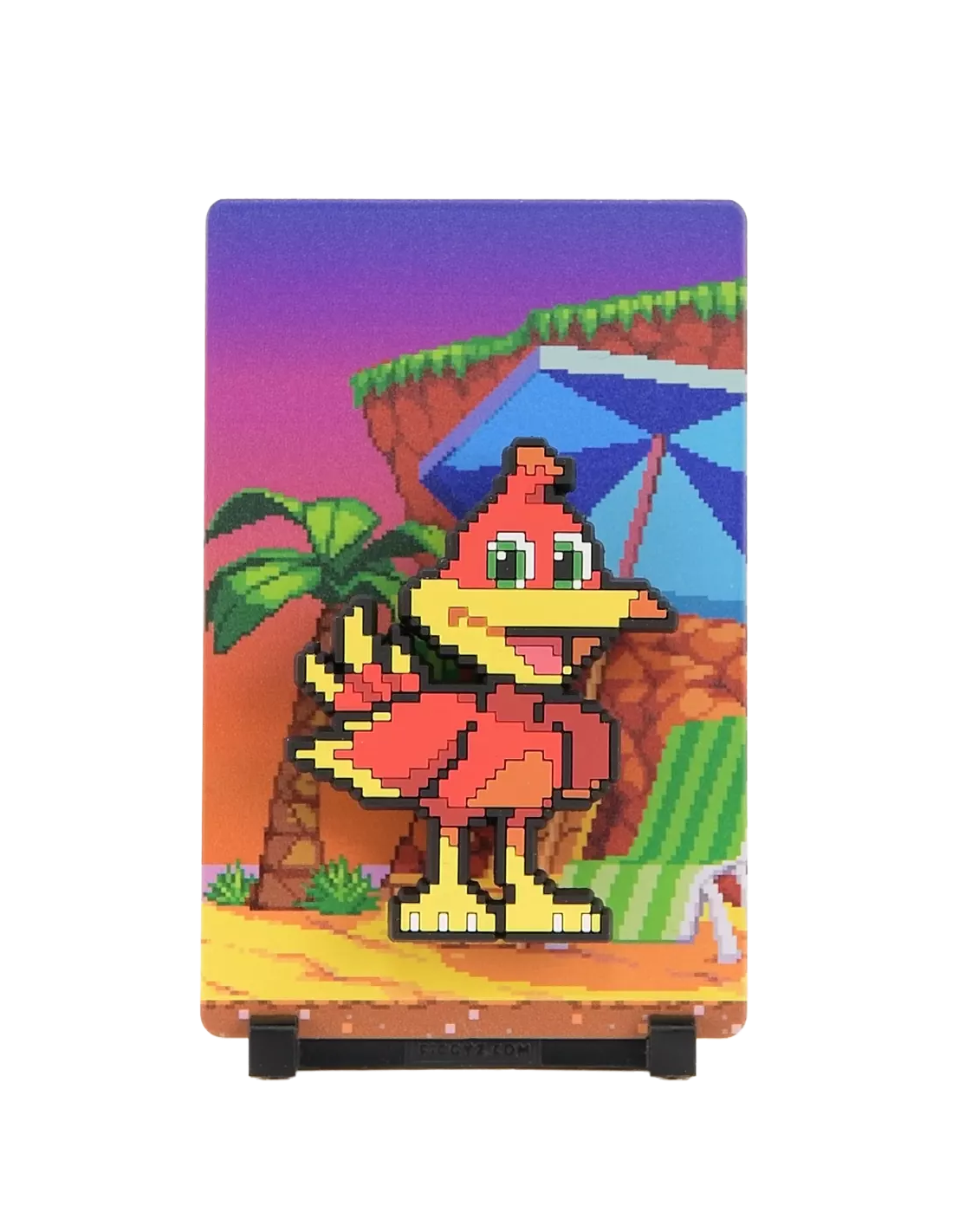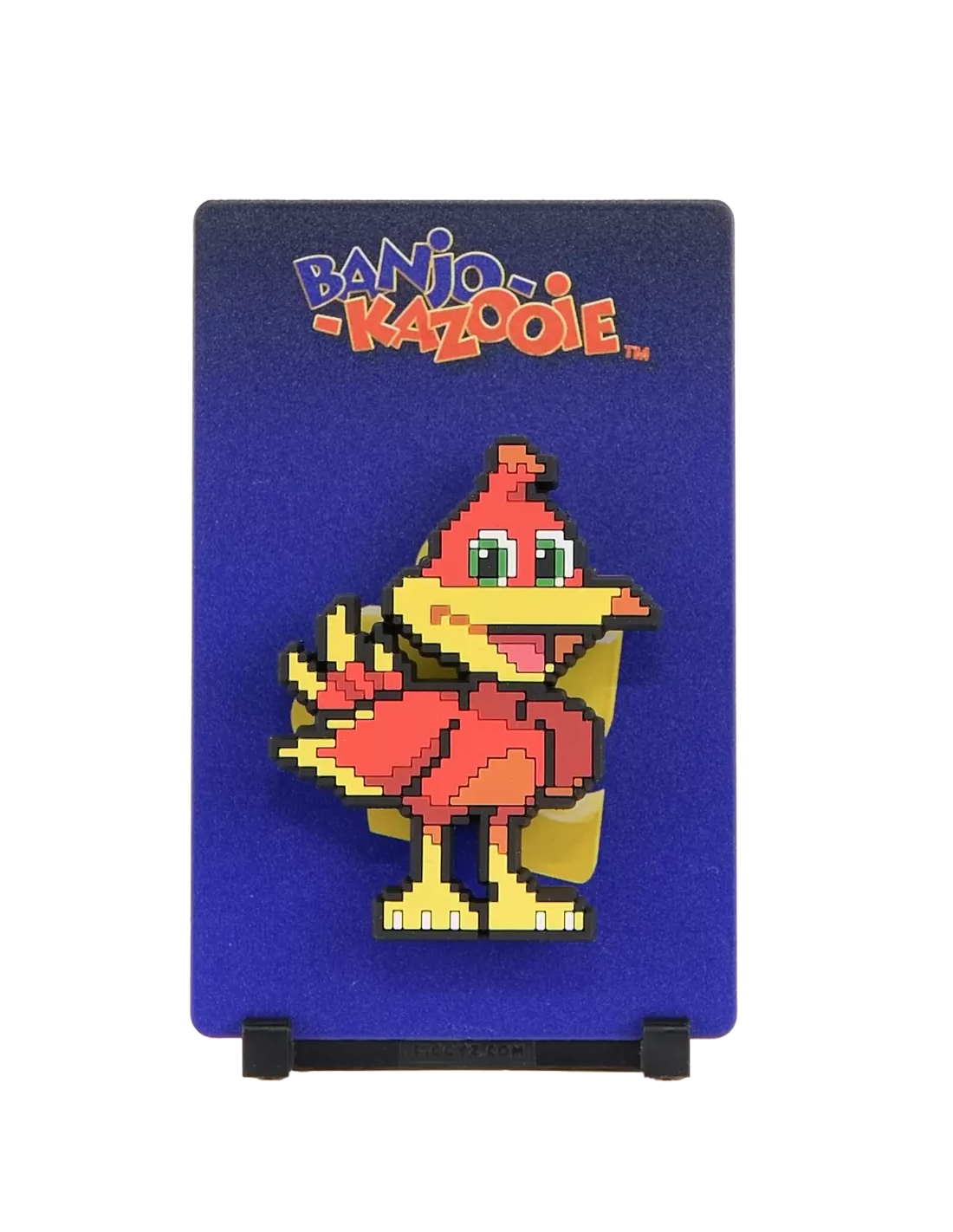 Con sus plumas rojas vibrantes, ojos expresivos y alas extendidas, esta versión captura toda la irreverencia y personalidad que convirtió a Kazooie en una favorita instantánea. La base temática inspirada en los mundos de Banjo-Kazooie la hace destacar aún más, evocando la esencia de las aventuras por Mumbo's Mountain, Click Clock Wood y más allá.