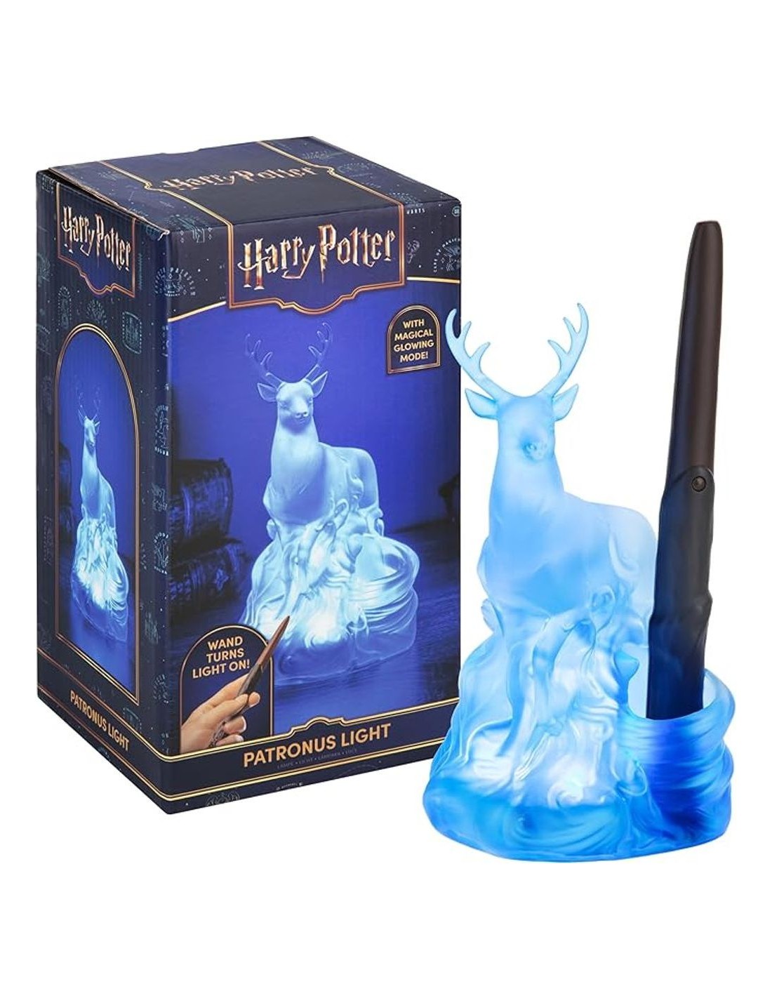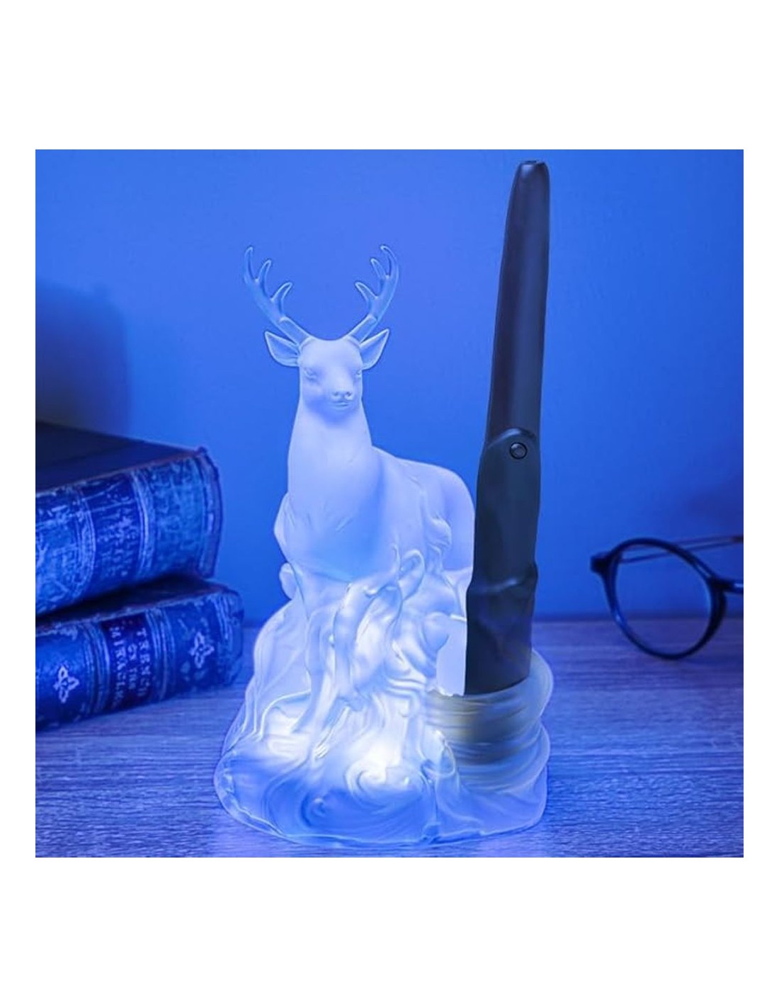 - Base decorativa con silueta del Patronus, ideal para exhibición o uso nocturno.