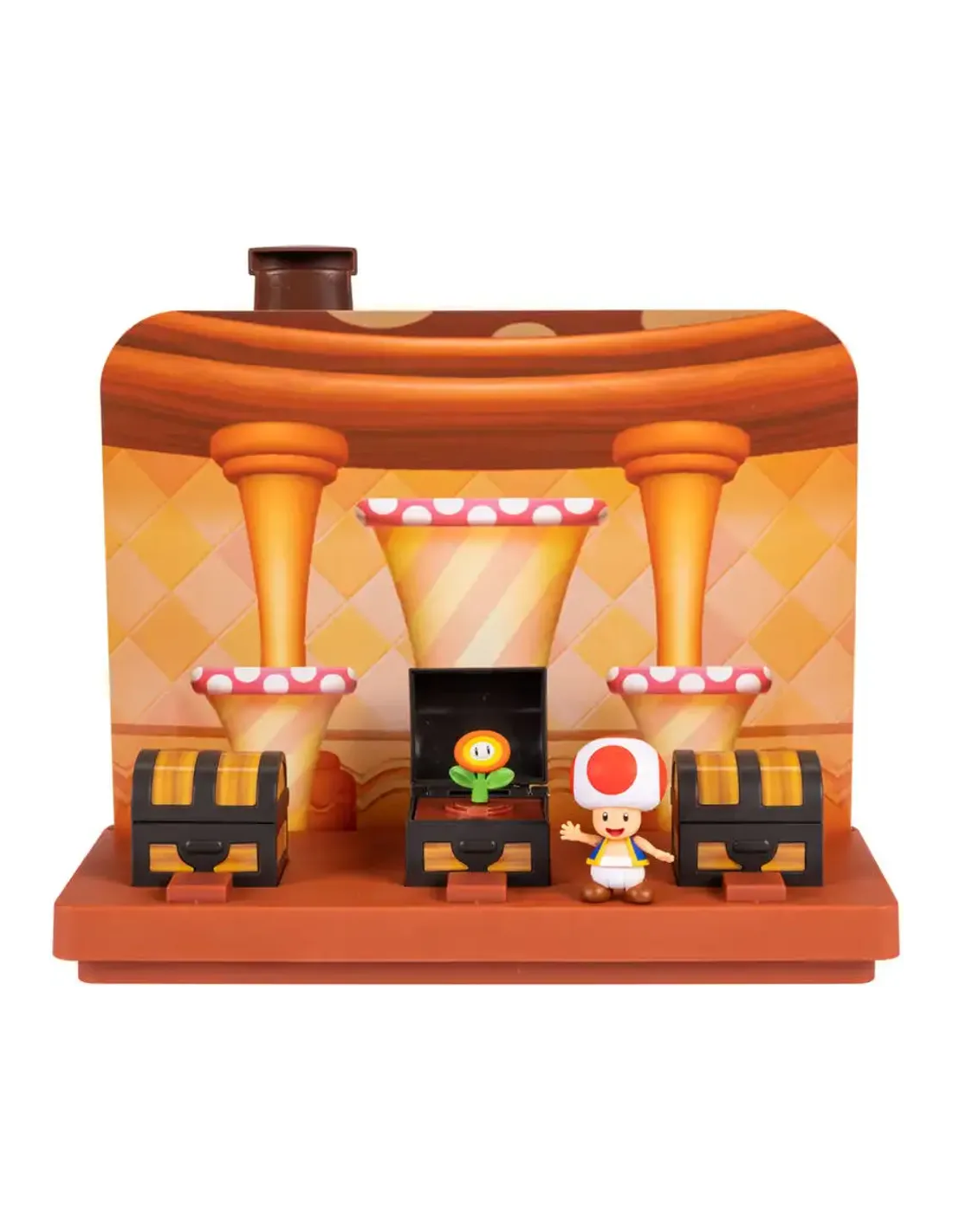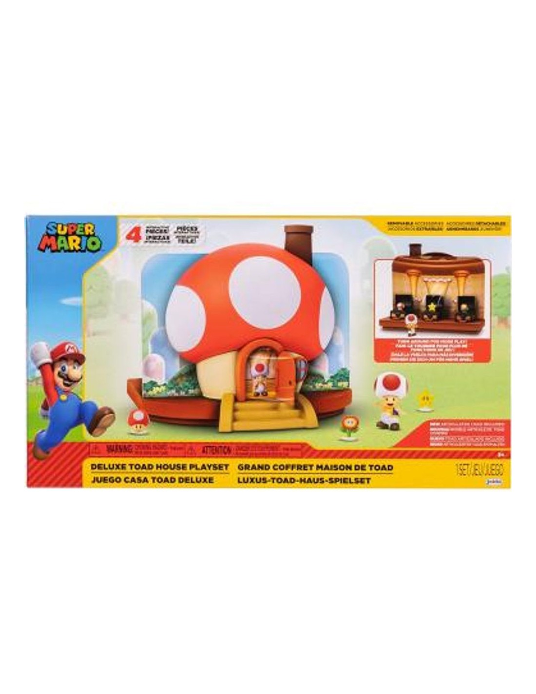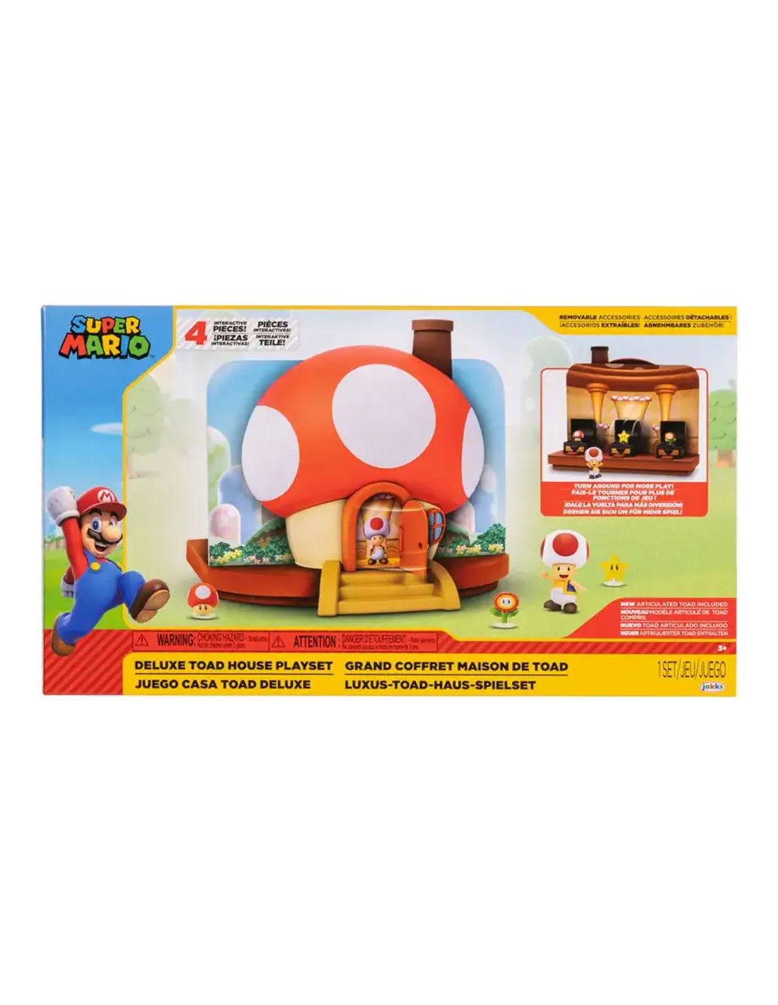 Entra en el mundo de Super Mario con el Playset Deluxe Toad House, el refugio más divertido del Reino Champiñón.