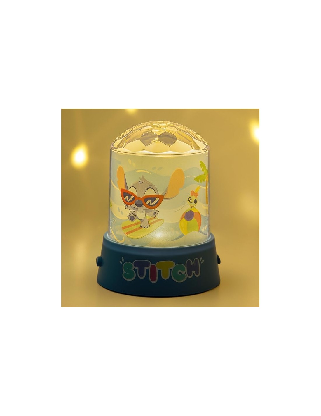Su diseño combina la figura de Stitch con un sistema de proyección rotatorio que llena las paredes y el techo de formas dinámicas. El dispositivo es fácil de usar, consume poca energía y está fabricado con materiales resistentes, por lo que resulta ideal tanto para uso decorativo como para sesiones de luz prolongadas.
