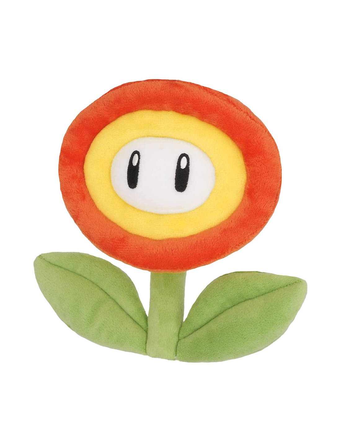 Peluche de 18 cm de altura aproximada del objeto Flor de Fuego de la saga de videojuegos Super Mario. Fabricado por San-ei con licencia oficial de Nintendo.