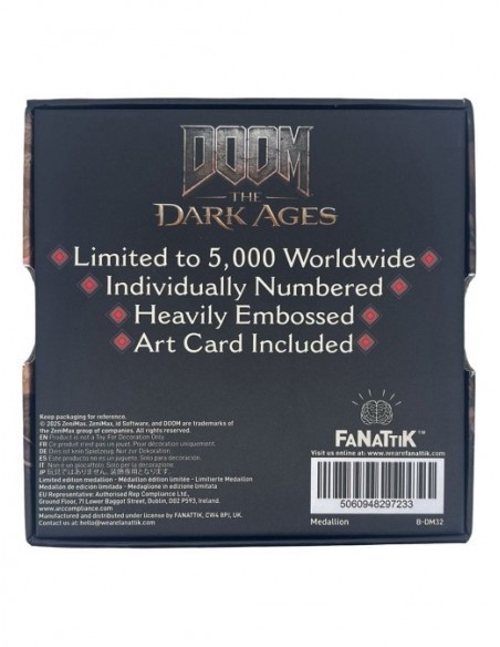 La Réplica Medallón Shield Saw Doom: The Dark Ages de Fanattik es una pieza de colección imprescindible para los fanáticos de la icónica saga de videojuegos Doom. Esta moneda conmemora la era oscura del juego, ofreciendo una representación detallada y auténtica del universo de Doom: The Dark Ages. Con un diseño meticulosamente elaborado, captura la esencia del juego y su atmósfera única.