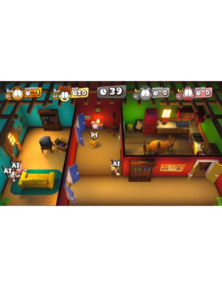 - 32 minijuegos para descubrir en famosos entornos de Garfield como la casa de Jon, la pizzería o la clínica de mascotas de Liz...
