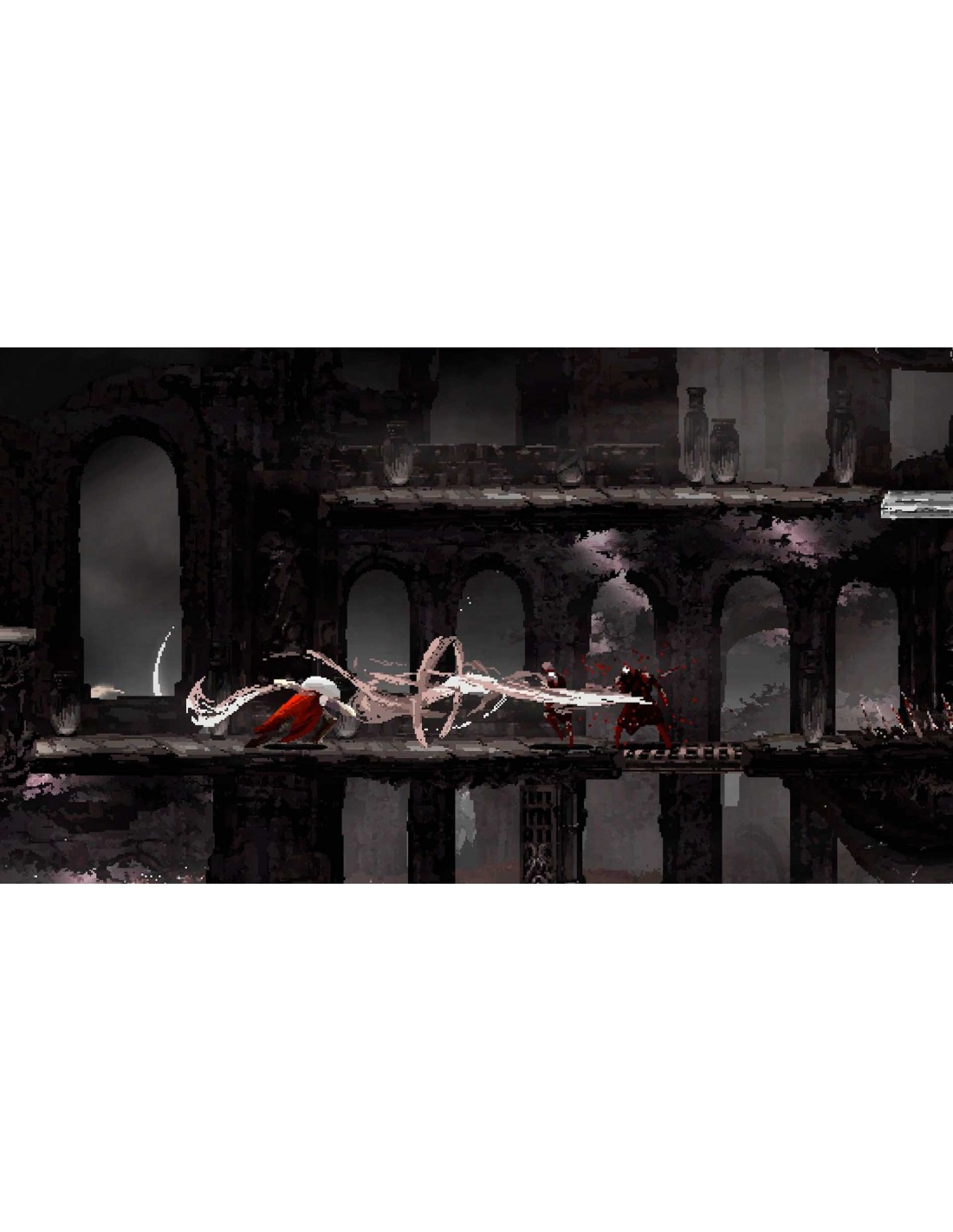 Su diseño pixel-art, profundamente detallado y marcado por contrastes violentos entre sombras y luces blanquecinas, crea una atmósfera inquietante que acompaña cada paso. Las animaciones son fluidas, el combate es contundente y cada enemigo supone una amenaza real que exige aprender patrones, moverse con precisión y aprovechar tus habilidades con inteligencia. El juego apuesta por una dificultad elevada, heredera del estilo soulslike, pero adaptada al formato 2D con un ritmo ágil y un diseño de escenarios que premia la exploración cuidadosa.