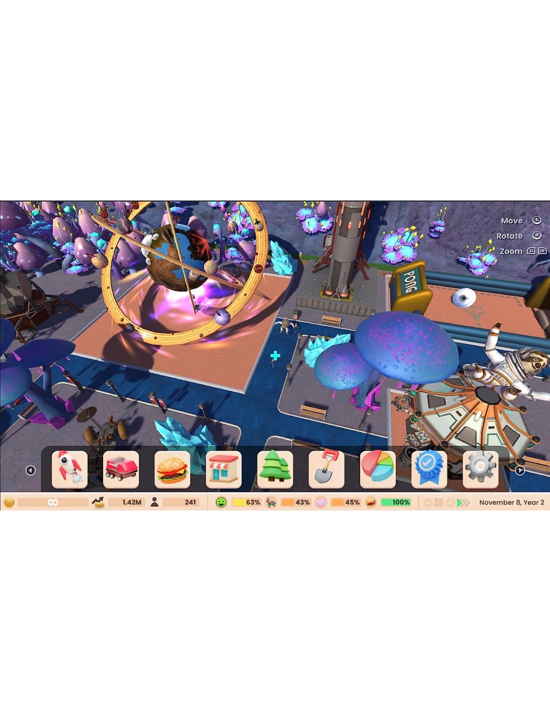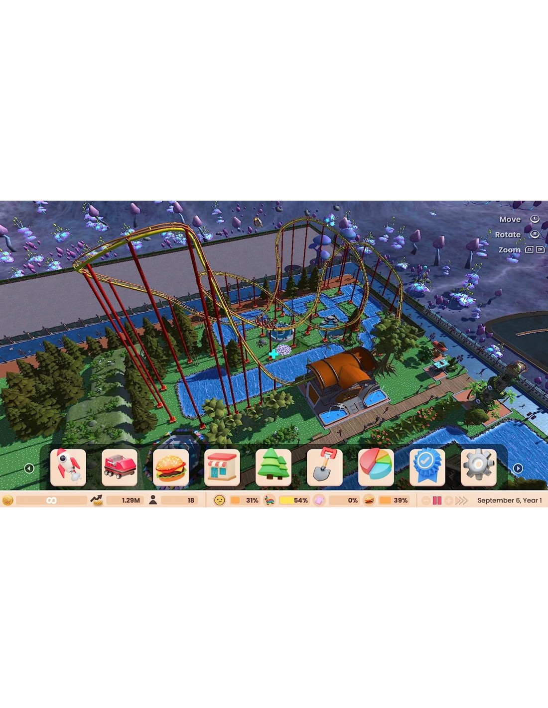 - Gestión: una interfaz simplificada te brinda todos los controles que necesitas para hacer crecer tu parque mientras utilizas un controlador de juego.