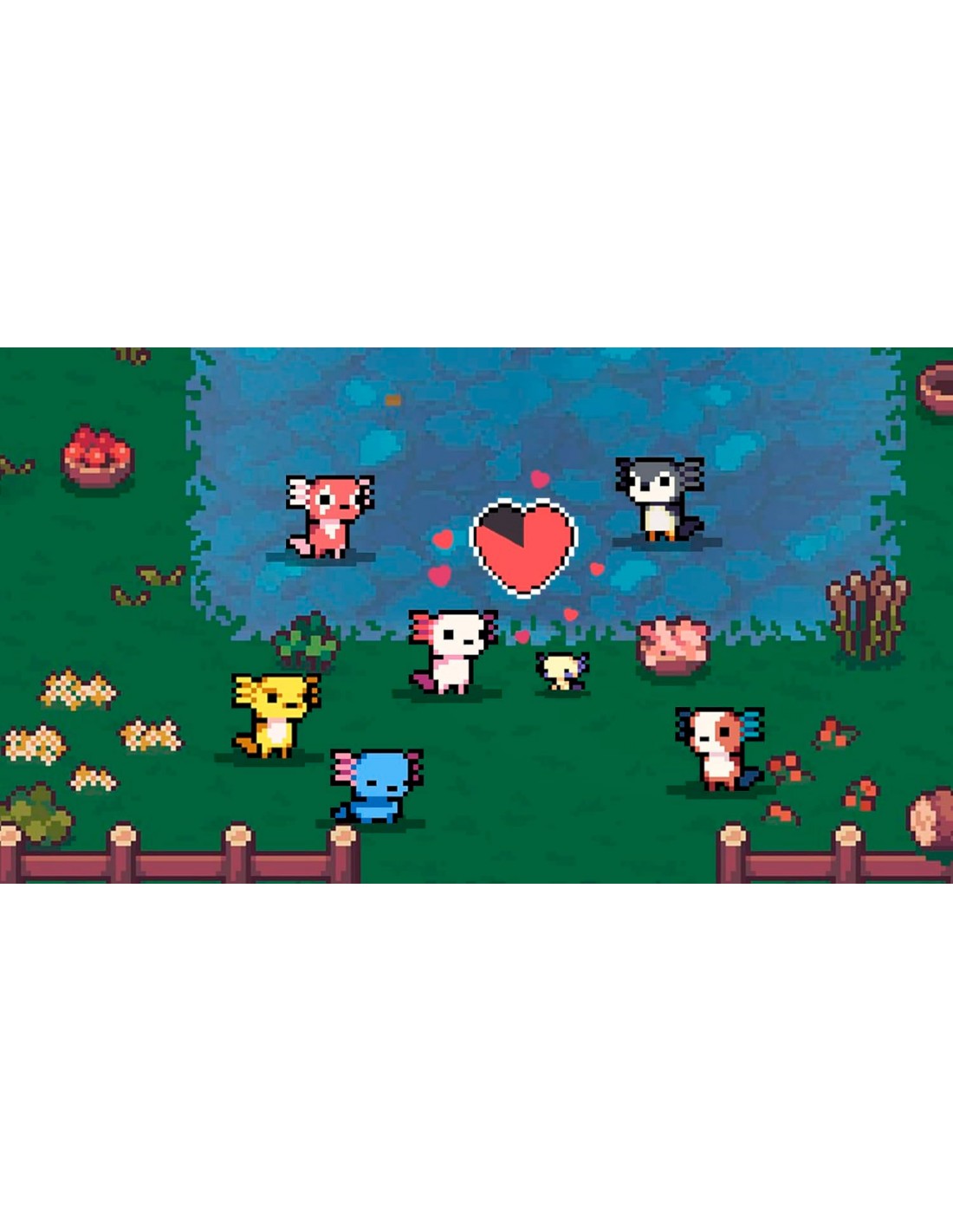 - En tu viaje, encontrarás distintas crías de axolotl: ¡los axolittles! Lleva a los axolittles a tu estanque; cuídalos con amor y cari-