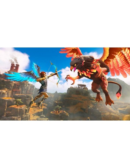 El mundo abierto es uno de los grandes protagonistas: siete regiones inspiradas en diferentes deidades, desde los bosques de Afrodita hasta las arenas de Ares o los paisajes helados de Boreas. Cada zona está repleta de puzles ingeniosos, templos flotantes, cofres ocultos, criaturas mitológicas y desafíos de habilidad donde el ingenio y la exploración constante se convierten en el centro de la jugabilidad. Ya sea escalando una montaña titánica, planeando sobre las nubes con las alas de Ícaro o enfrentándote a cíclopes, arpías y minotauros, el juego invita continuamente a la curiosidad.