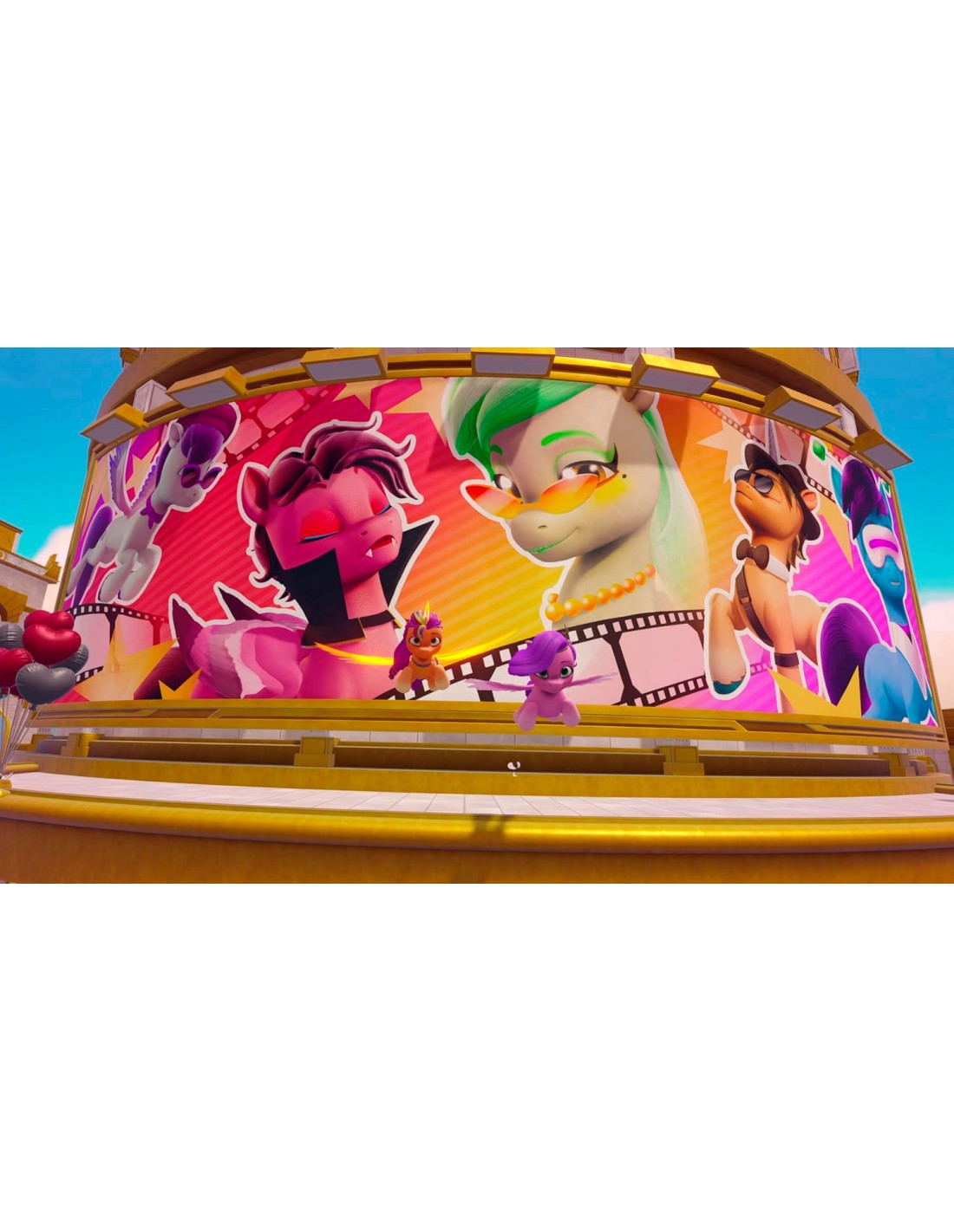 Con el trabajo en equipo de todos los ponis, destapa la magia inestable que convierte los teléfonos en pizzas, rompe la gravedad y salpica colores por todas partes. Juega como Sunny, Hitch, Izzy, Pipp, Zipp y Misty y usa tus habilidades especiales para explorar Altos de Céfiro, una ciudad en el cielo repleta de pegasos, coleccionables especiales, y la posibilidad de sacar fotos con tus ponis favoritos.