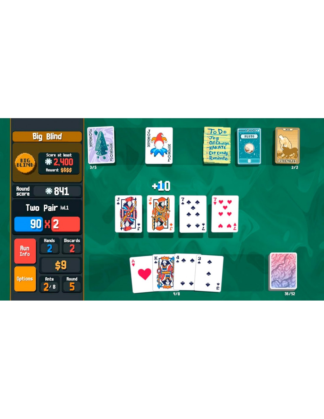 - Rompe la baraja. Despliega tu habilidad con varias herramientas potentes: diferentes barajas, comodines, cartas de tarot, cartas planetarias, cartas espectrales y cupones. Utiliza estos versátiles elementos para liberar un frenesí de combos y potencia al máximo tus manos de póker con sinergias electrizantes de pura adrenalina.