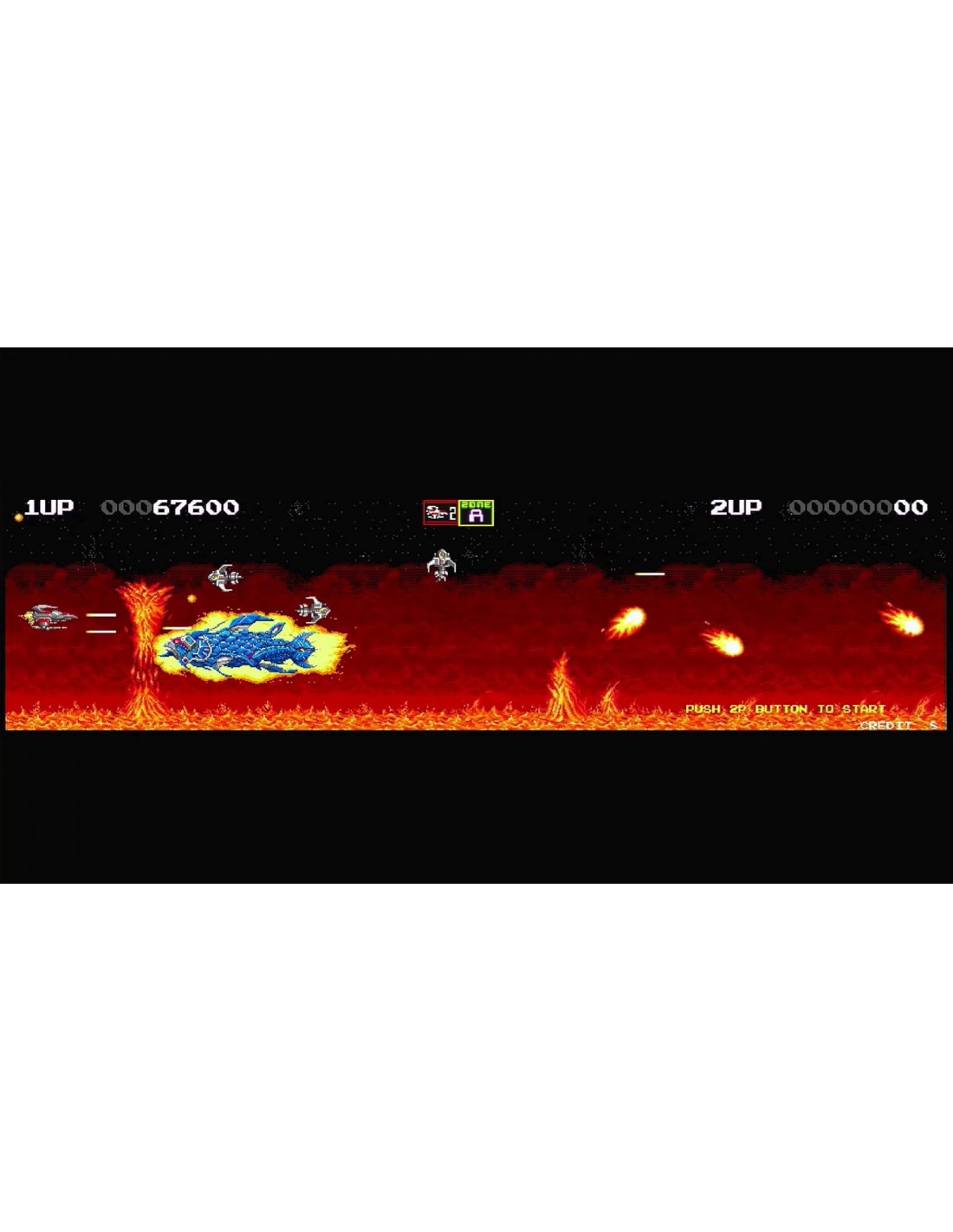 - Darius II, 1989, shoot 'em up. Siglos después de los acontecimientos de Darius, la humanidad se enfrenta al imperio Belsar. ¡Vuela y lucha por el sistema solar!
