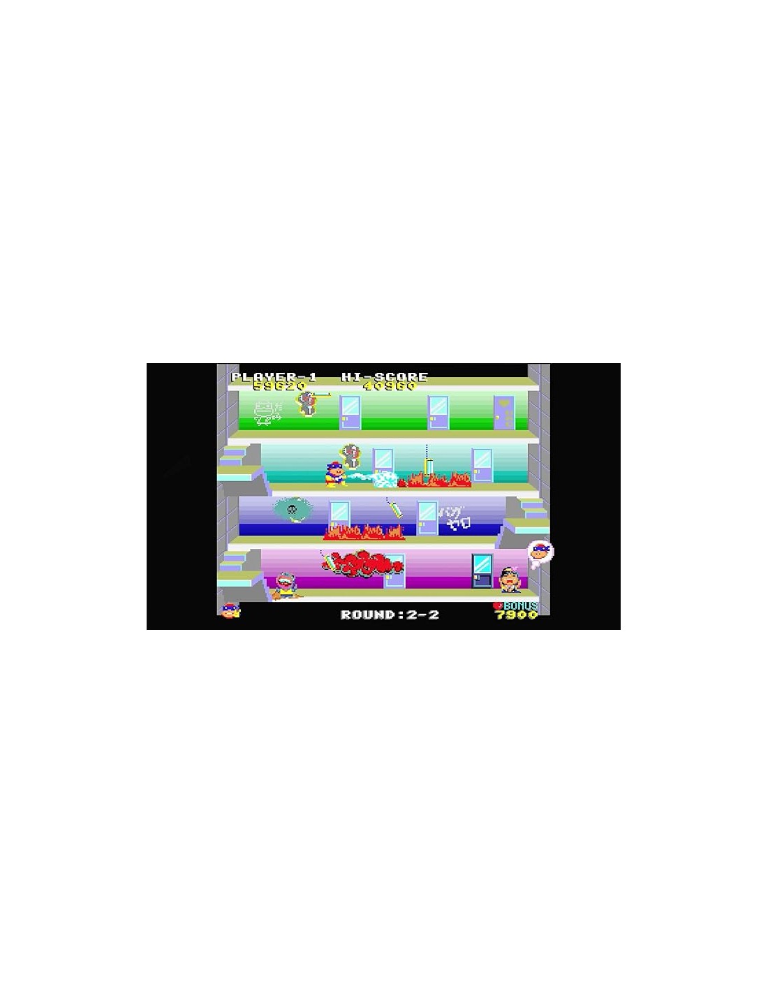 - Ben Bero Beh, 1984, plataformas. ¡Ábrete paso, extintor en mano, por un edificio en llamas, piso peligroso tras piso peligroso, para salvar a tu novia, Nao-chan!