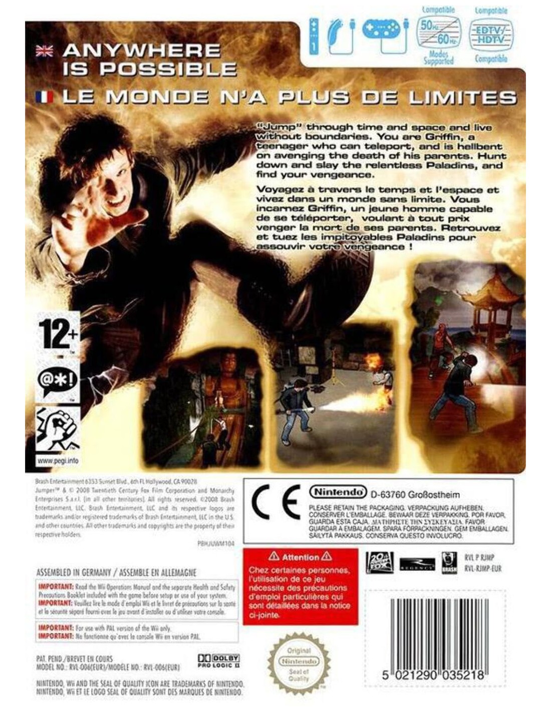 Jumper: Griffin's Story para Wii es un juego de acción y aventura que profundiza en el universo de la película Jumper, centrado en el personaje Griffin, un joven con la habilidad de teletransportarse instantáneamente. Explora diferentes escenarios mientras utilizas esta habilidad para combatir enemigos y resolver desafíos.