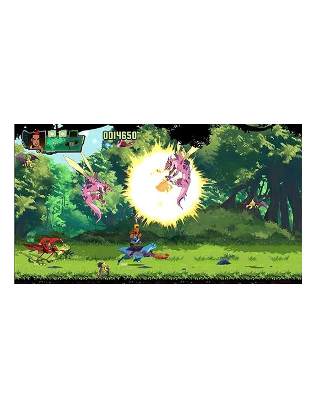 Spidersaurs es un juego de acción tipo "run and gun" desarrollado por WayForward, que rinde homenaje a los clásicos de arcade con una estética de dibujos animados y una jugabilidad frenética. Esta edición física japonesa para PlayStation 5 es compatible con consolas europeas y ofrece textos en varios idiomas, incluyendo español, inglés, japonés, francés, alemán e italiano.